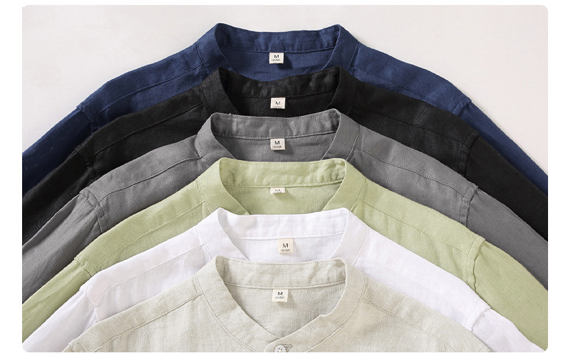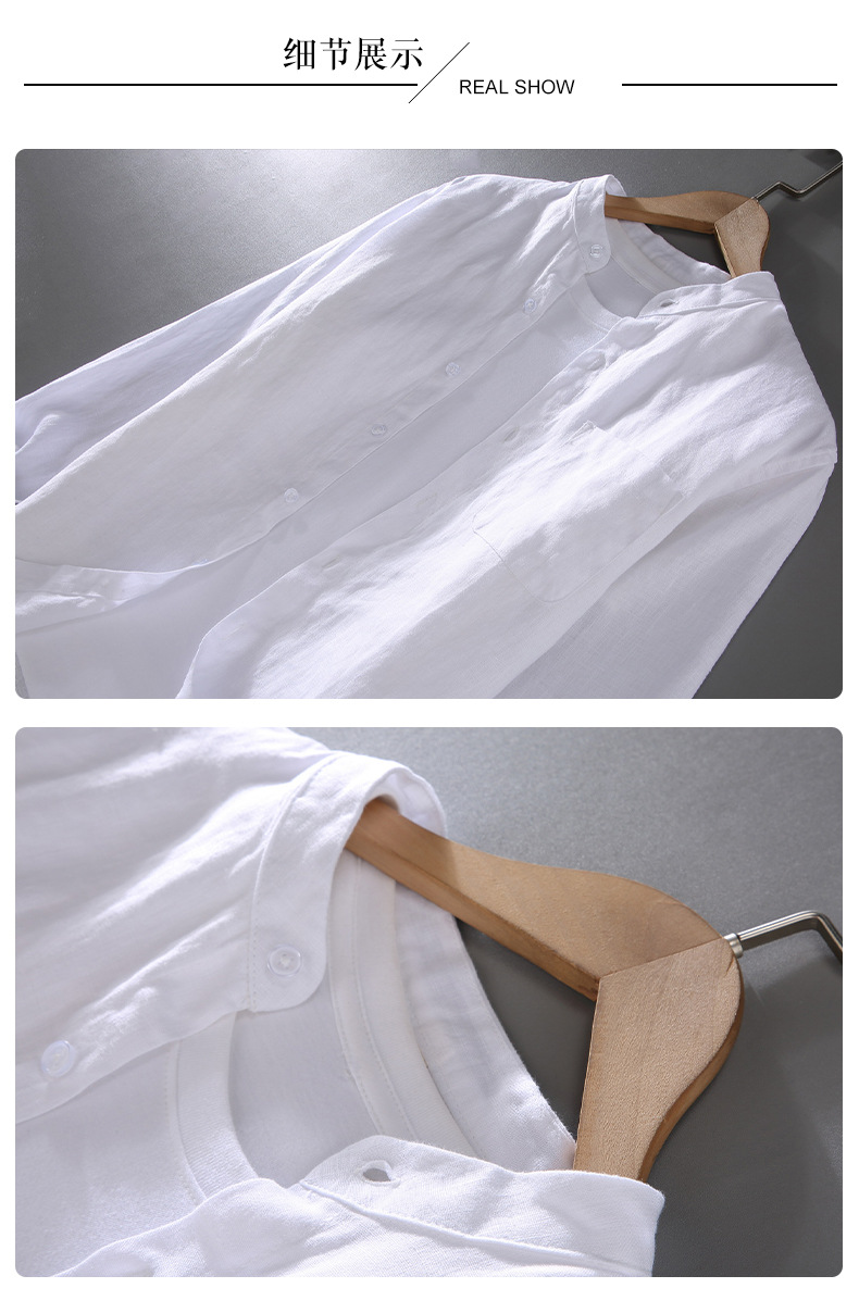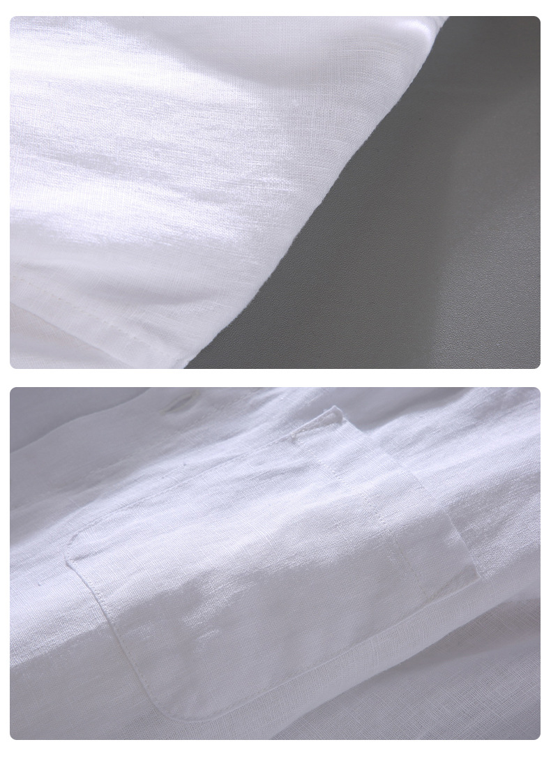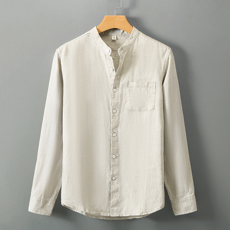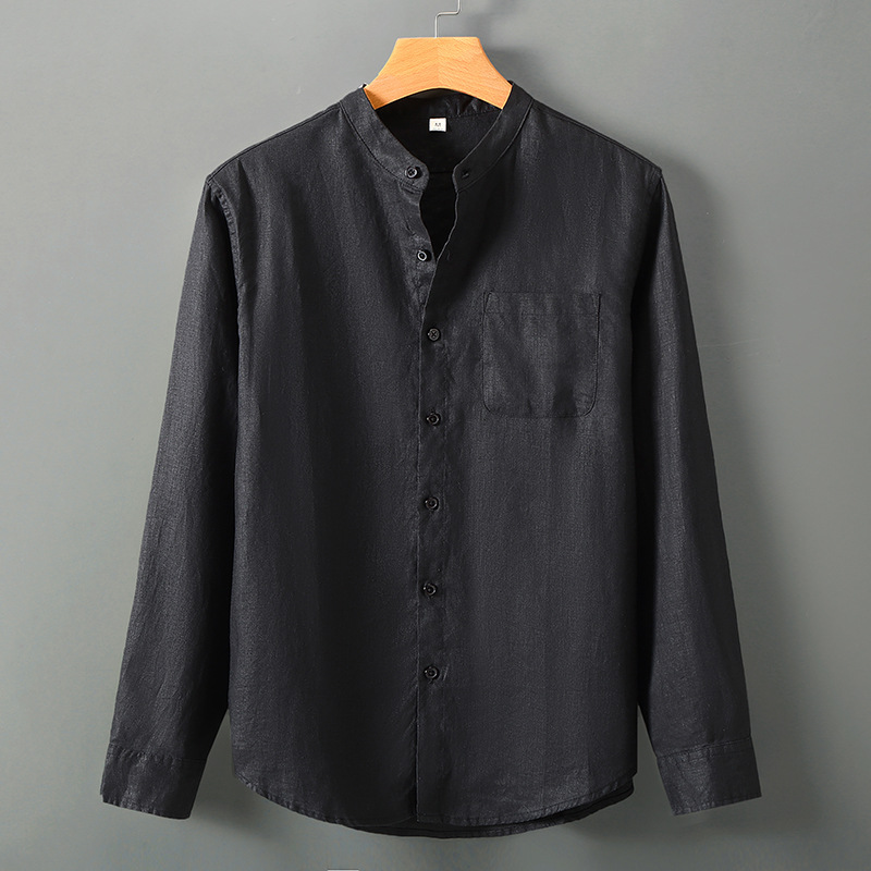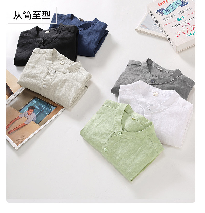 9702 순수 리넨 긴팔 셔츠 남성 중국 스타일 수직 칼라 일반 리넨 포켓 느슨한 통기성 카디건 리넨 탑