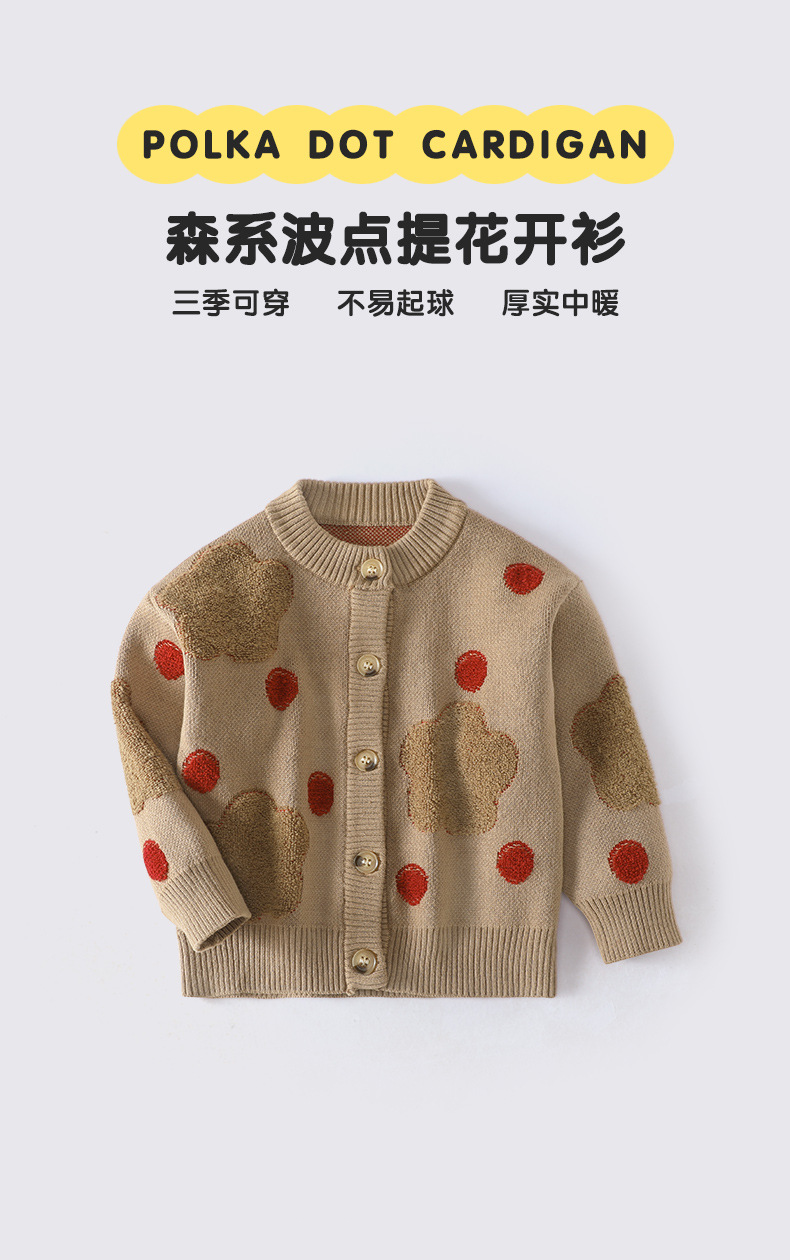 소녀 니트 카디건 가을과 겨울 달콤한 폴카 도트 라운드 넥 재킷 따뜻한 긴 소매 스웨터 여성의 보물 플러스 두꺼운 스웨터