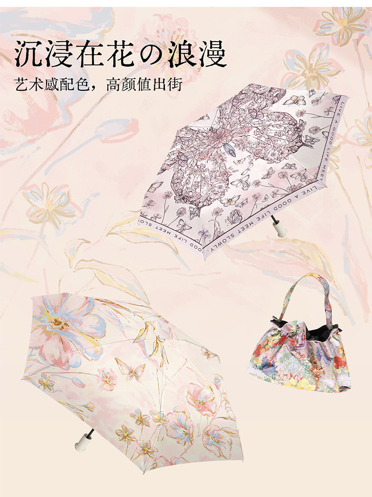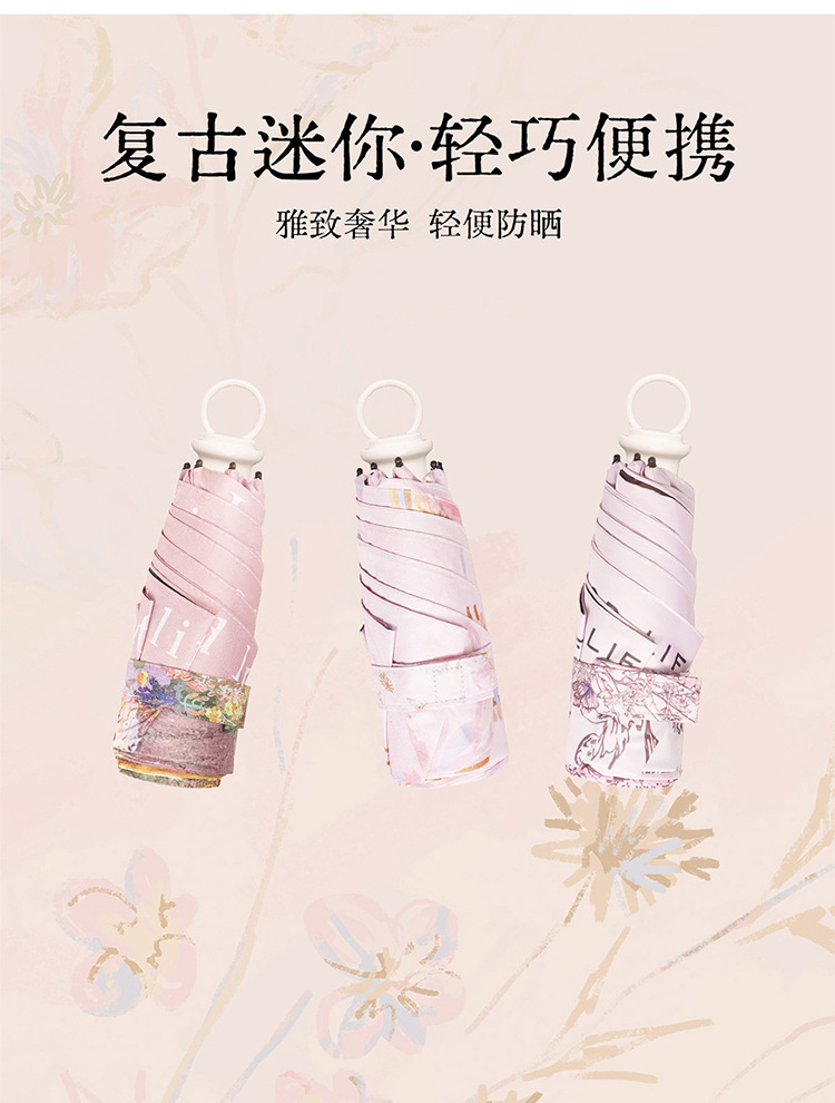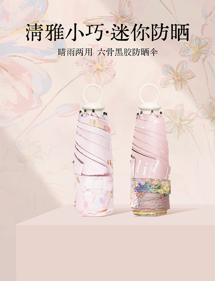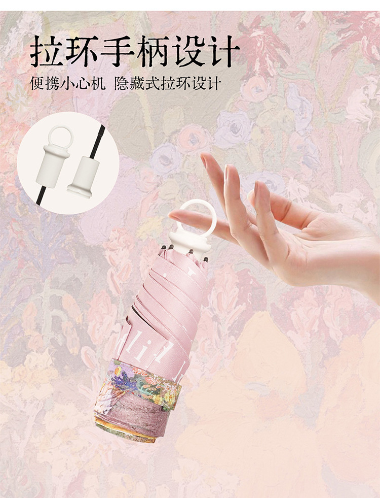 울트라 라이트 당김 링 우산 50% 접이식 핸드백 휴대용 소형 핸드백 블랙 고무 태양 보호 햇살 우산 프랑스 우수한 밀도 우산스토어 가기