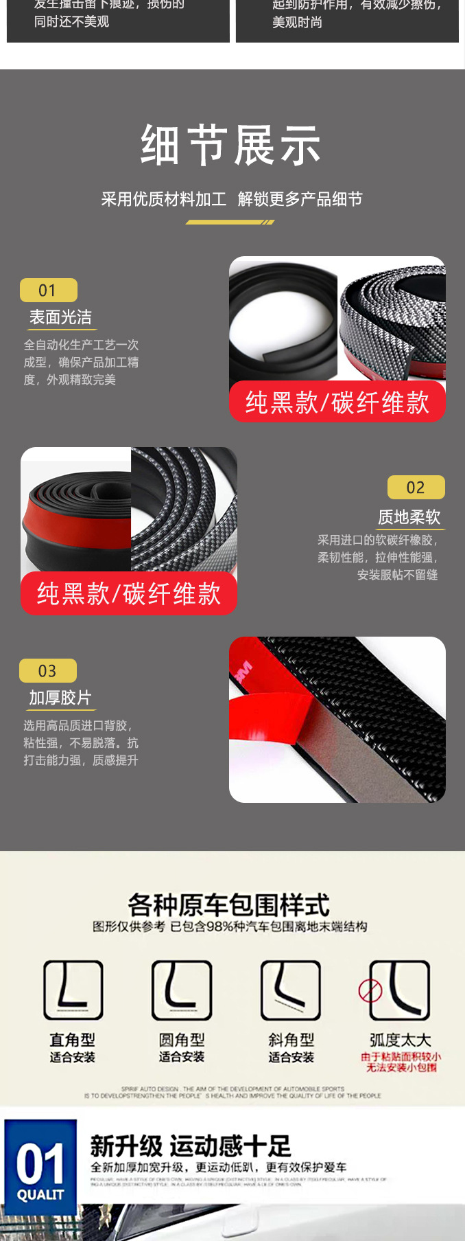 자동차 앞 립 충돌 방지 고무 스트립 유니버설 전면 삽 수정 범퍼 스크래핑 스트립 대형 서라운드 작은 사이드 스커트 장식