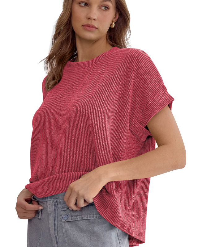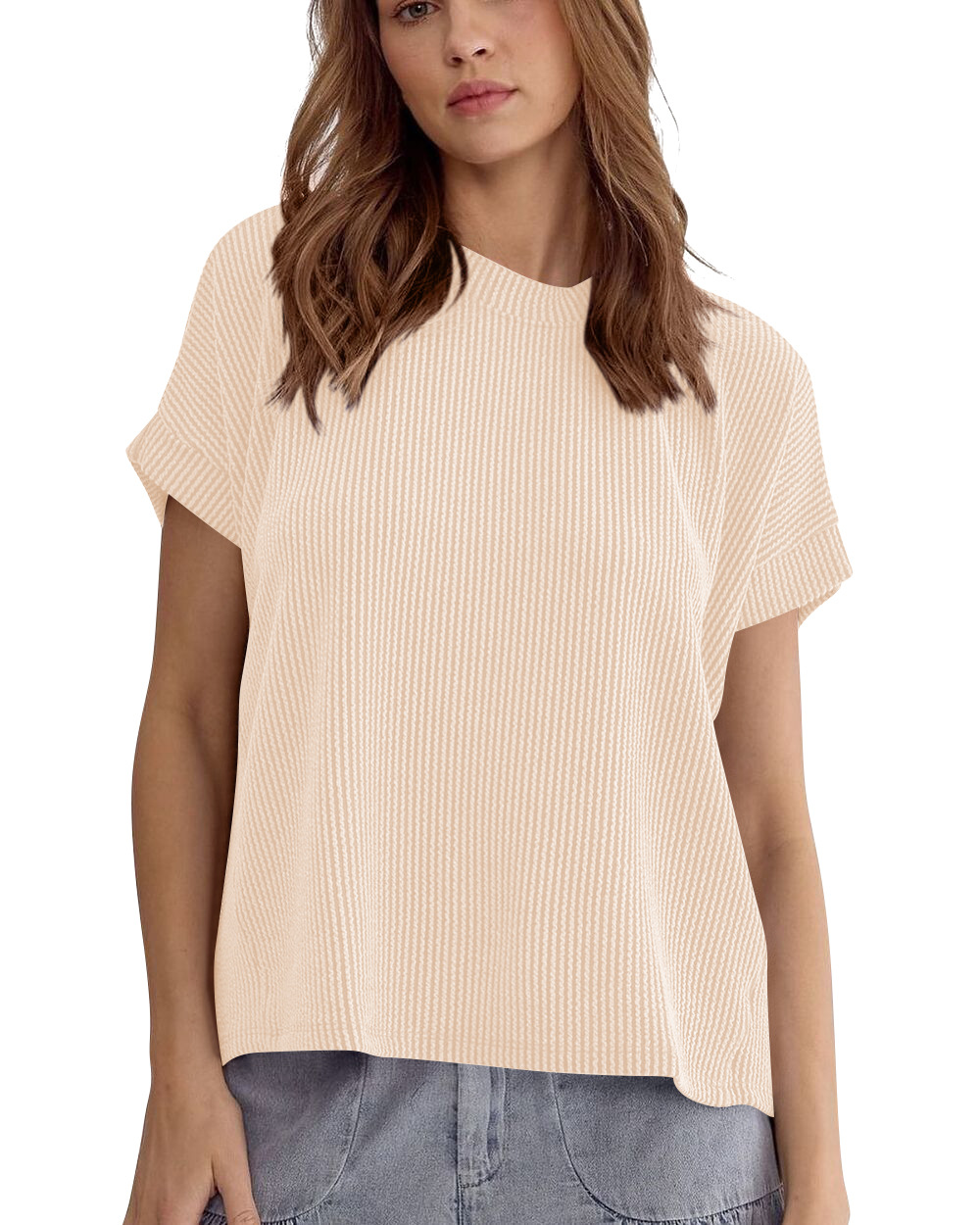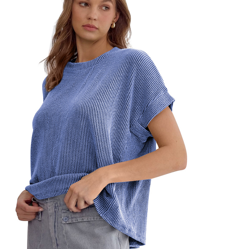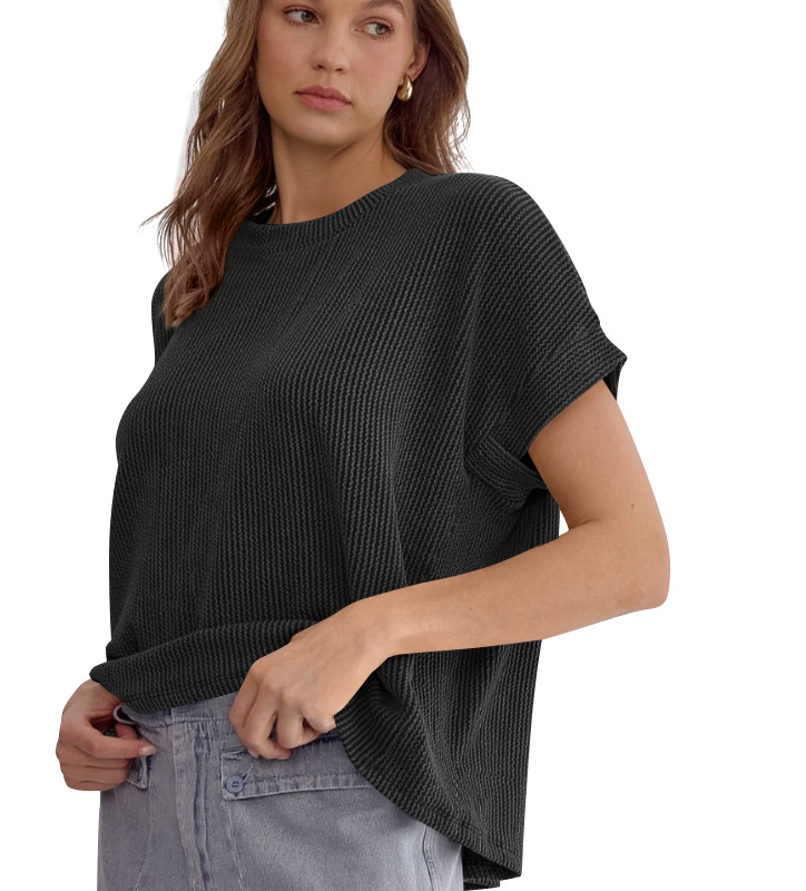 국경을 넘는 유럽과 미국 2025 봄과 여름 새로운 아마존 TK 핏 니트 셔츠 느슨한 풀오버 크루 넥 여성용 반팔 티셔츠