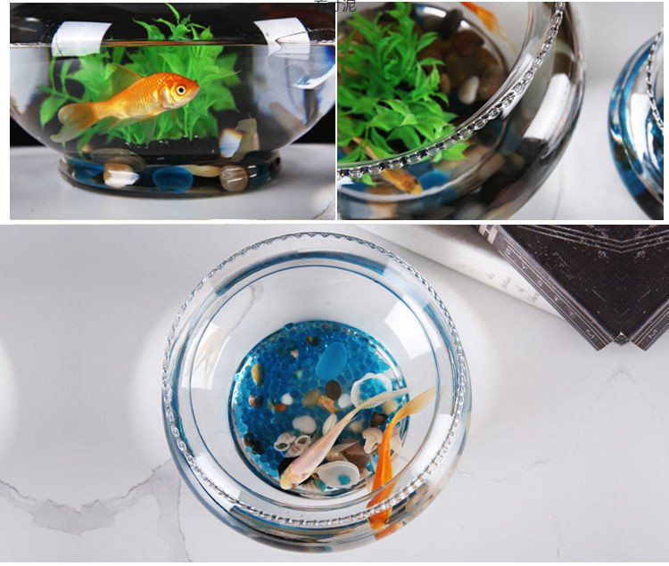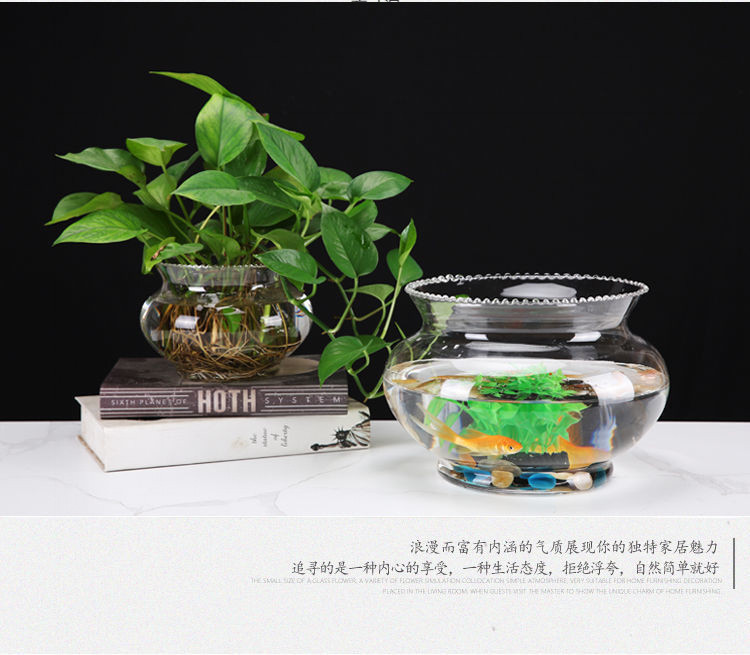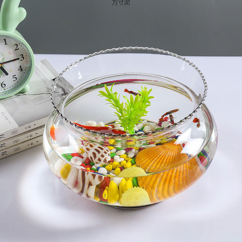 투명한 유리 물고기 탱크 작은 가정용 레이스 금붕어 탱크 거북이 탱크 생태 수경 녹색 심기 탁상 수족관 장식품스토어 가기
