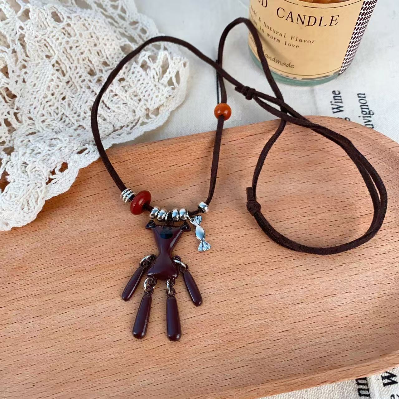다크 브라운 콩 곰 펜던트 목걸이 여성의 새로운 Ins 스타일 스웨터 체인 만화 귀여운 틈새 가을과 겨울 스웨터 체인
