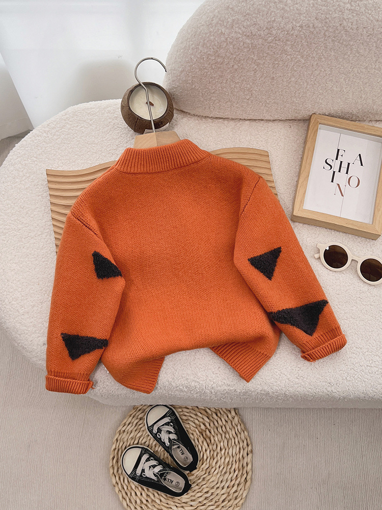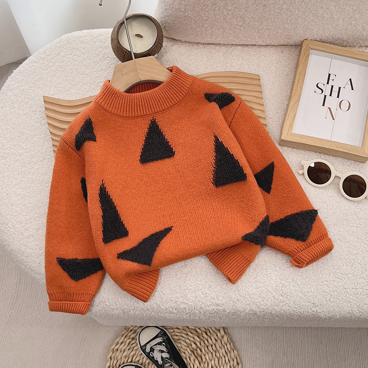 2024 가을과 겨울 새로운 소년 소녀 자수 풀오버 따뜻한 니트 탑 한국 아동복 하프 터틀넥 스웨터