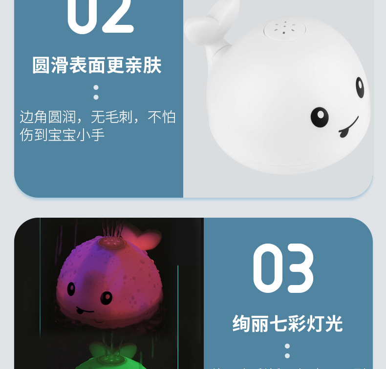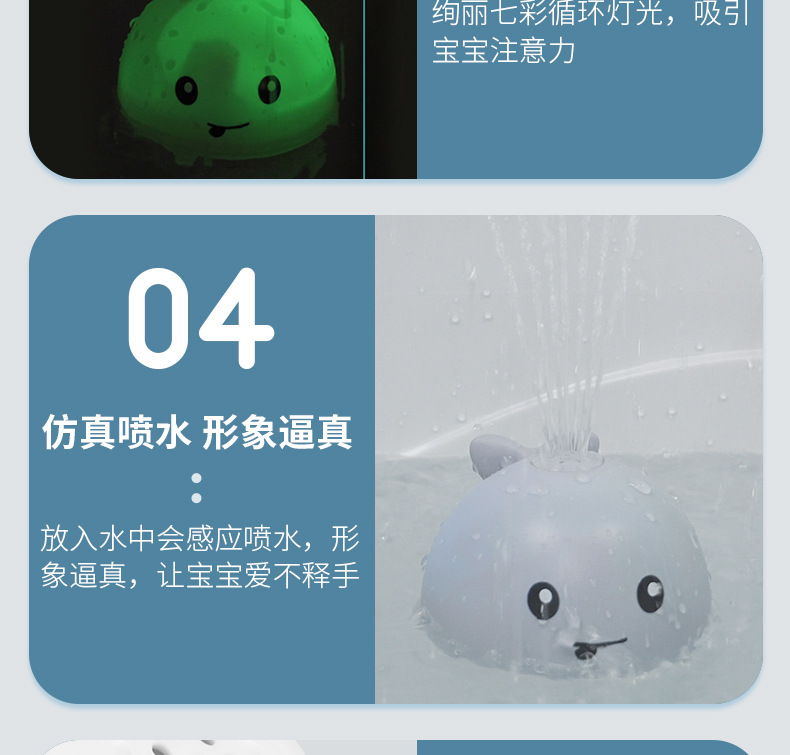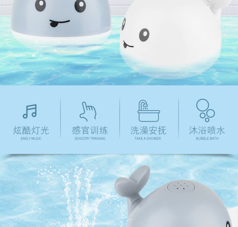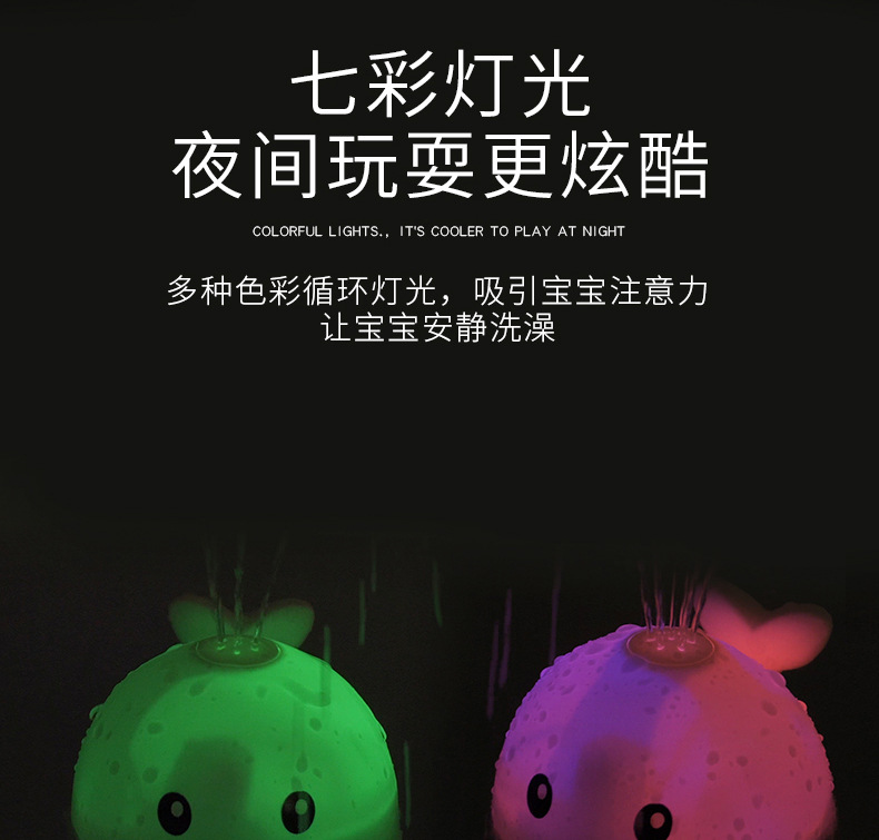 국경 간 유아 전기 유도 물 스프레이 볼 작은 고래 빛 아기 어린이 욕실 물 놀이 목욕 장난감