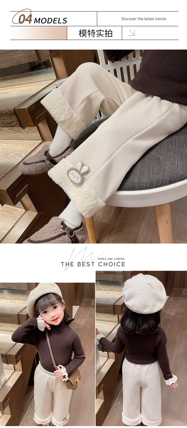 여자 기모 두꺼운 겨울 바지 봉제 따뜻한 여성 아기 한국 스타일 바지 어린이 방풍 두꺼운 캐주얼 바지