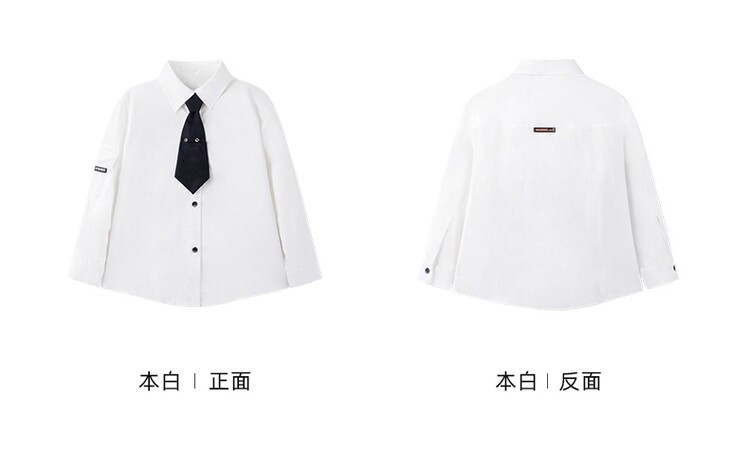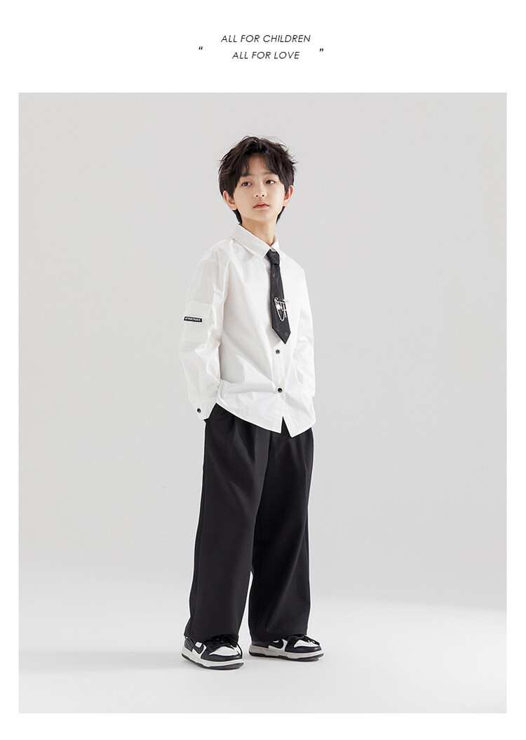 소년 셔츠 어린이 긴 소매 세트 흰색 셔츠 2024 새로운 스타일 중 큰 어린이의 봄과 가을 캐주얼 탑 잘 생긴