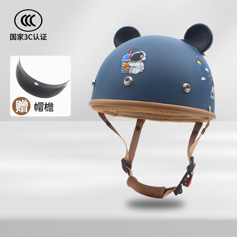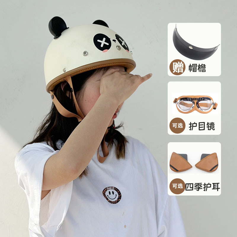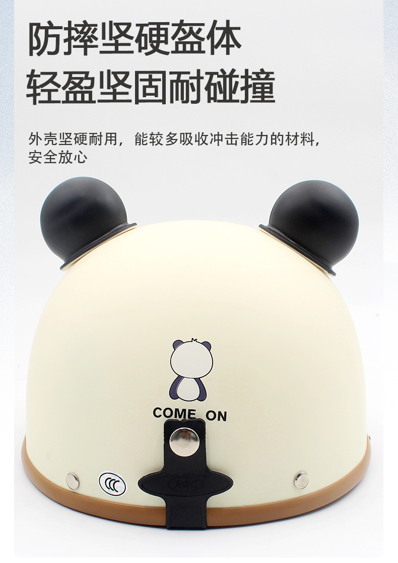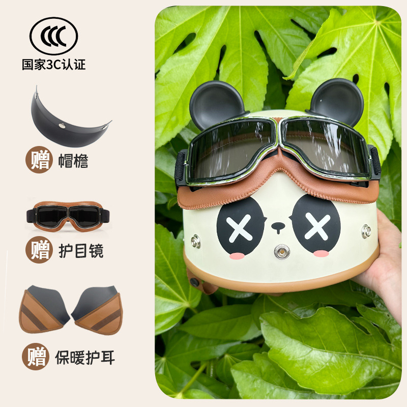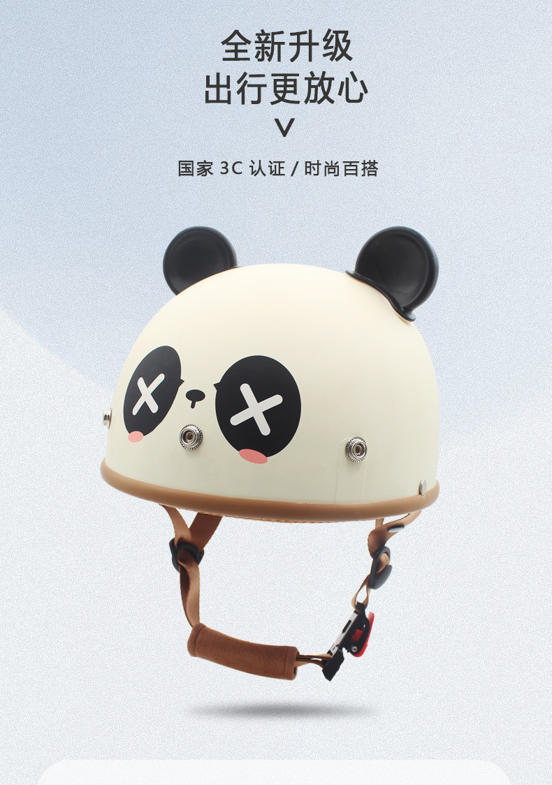 3C 인증 헬멧 전기 자동차 오토바이 만화 팬더 그물 레드 하프 헬멧 여름 사계절 승마 남녀 안전 헬멧