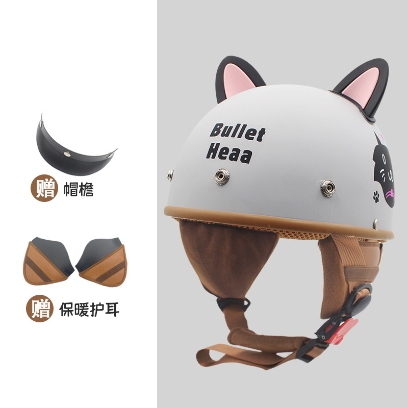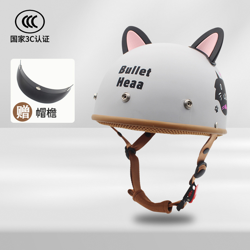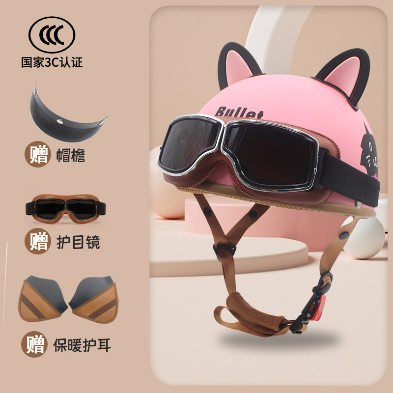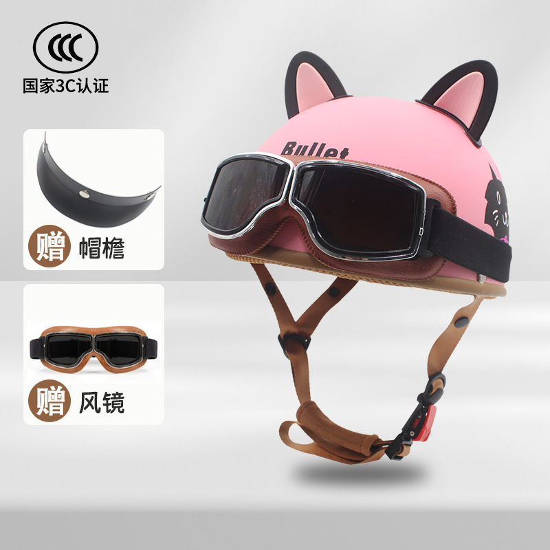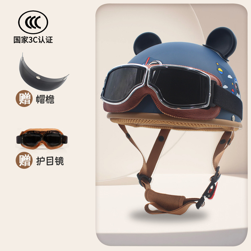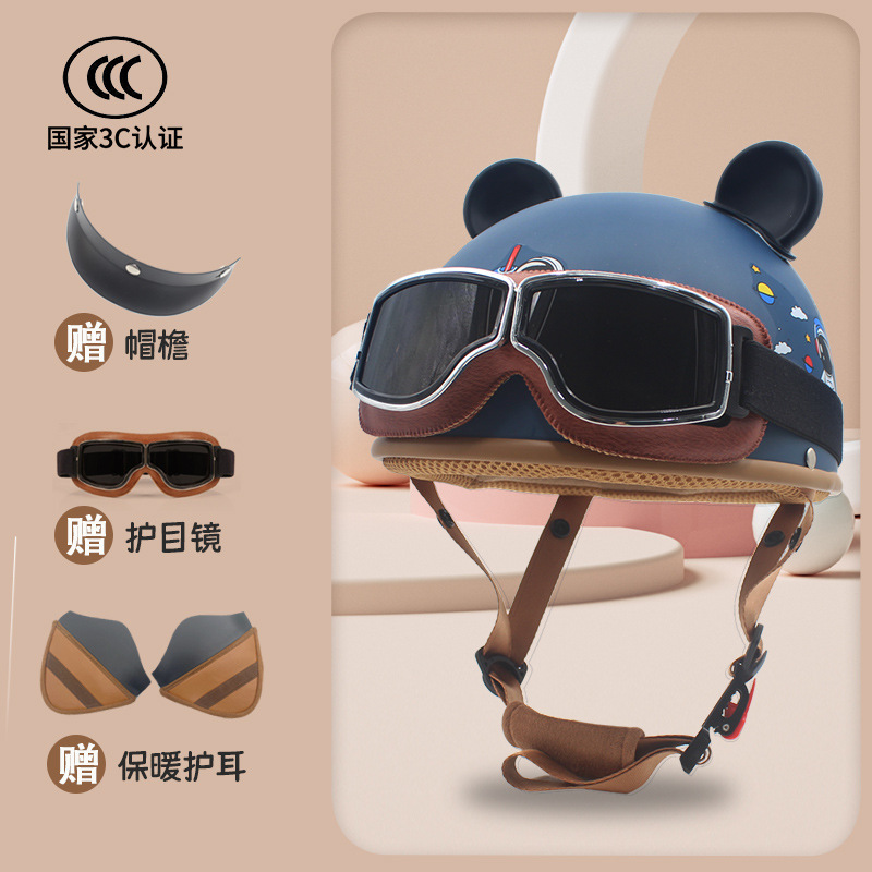3C 인증 헬멧 전기 자동차 오토바이 만화 팬더 그물 레드 하프 헬멧 여름 사계절 승마 남녀 안전 헬멧