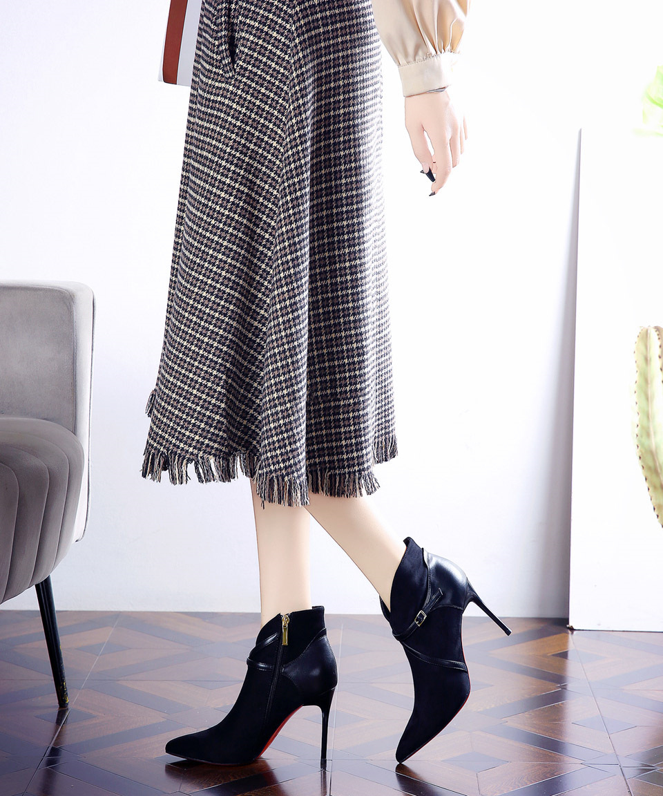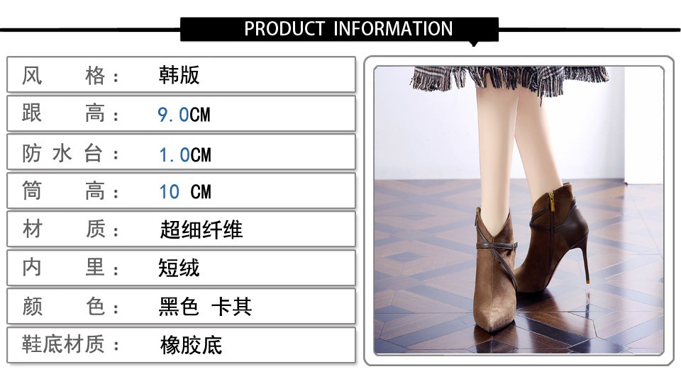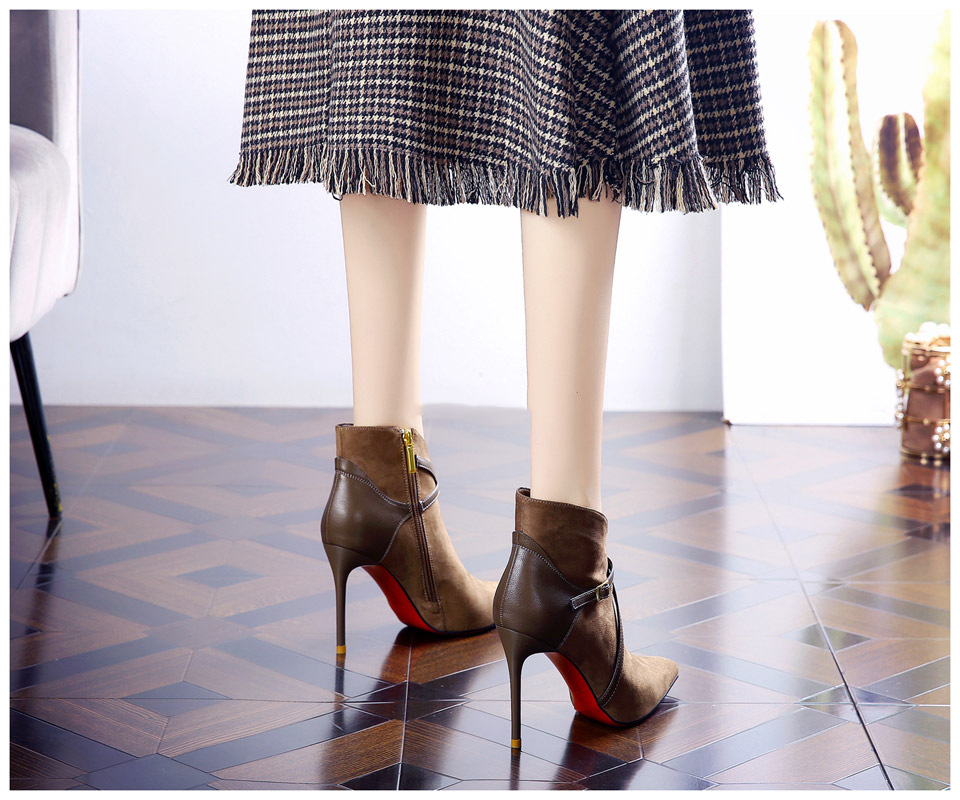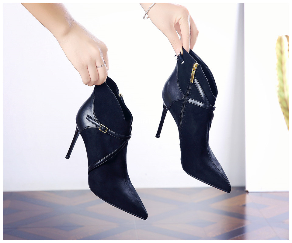 365-36 하이힐 여성 2024 가을과 겨울 따뜻한 패션 튀김 거리 뾰족한 발목 부츠 벨트 버클 얇은 힐 마틴 부츠스토어 가기