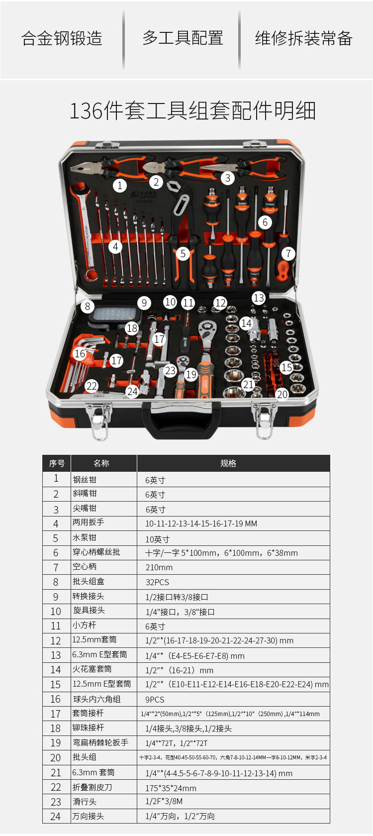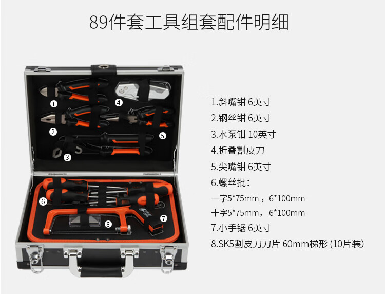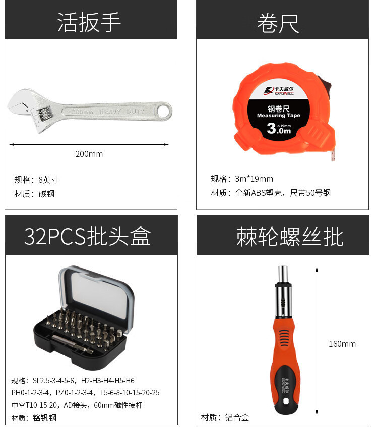 카프웰 도구 상자 세트 가정용 자동 수리 알루미늄 합금 강화 소매 산토 도리 82 조각 SS3565E스토어 가기