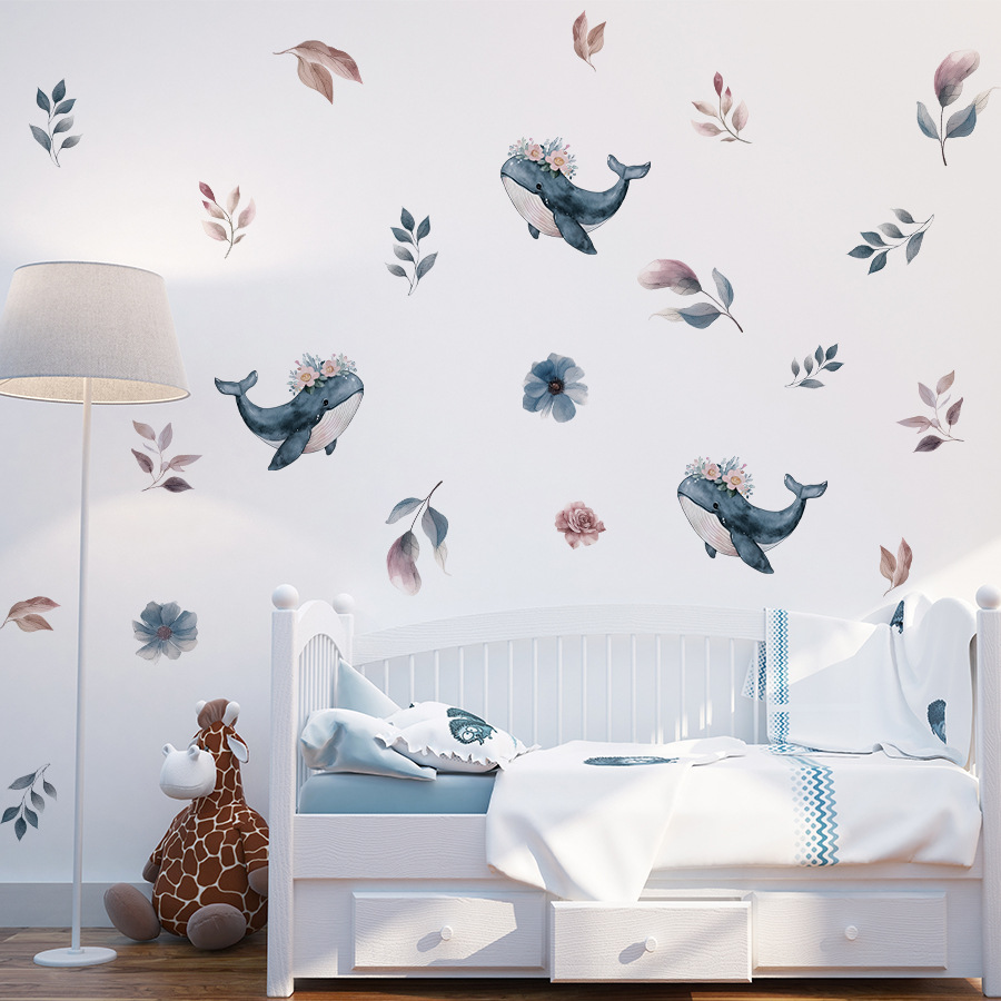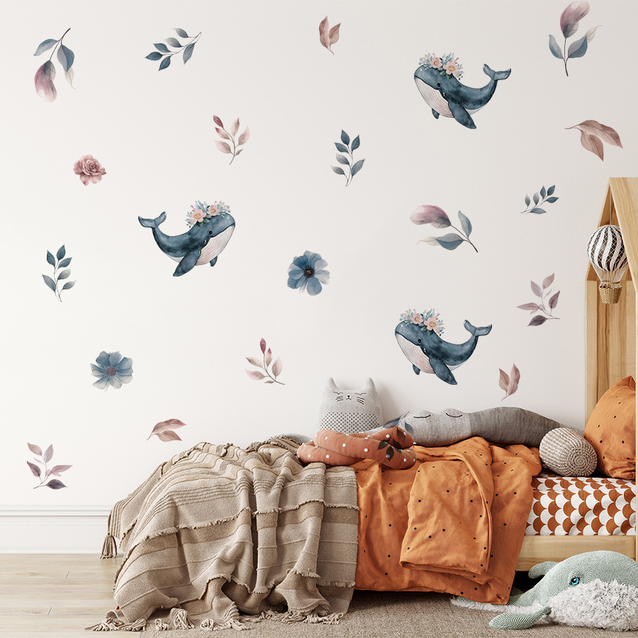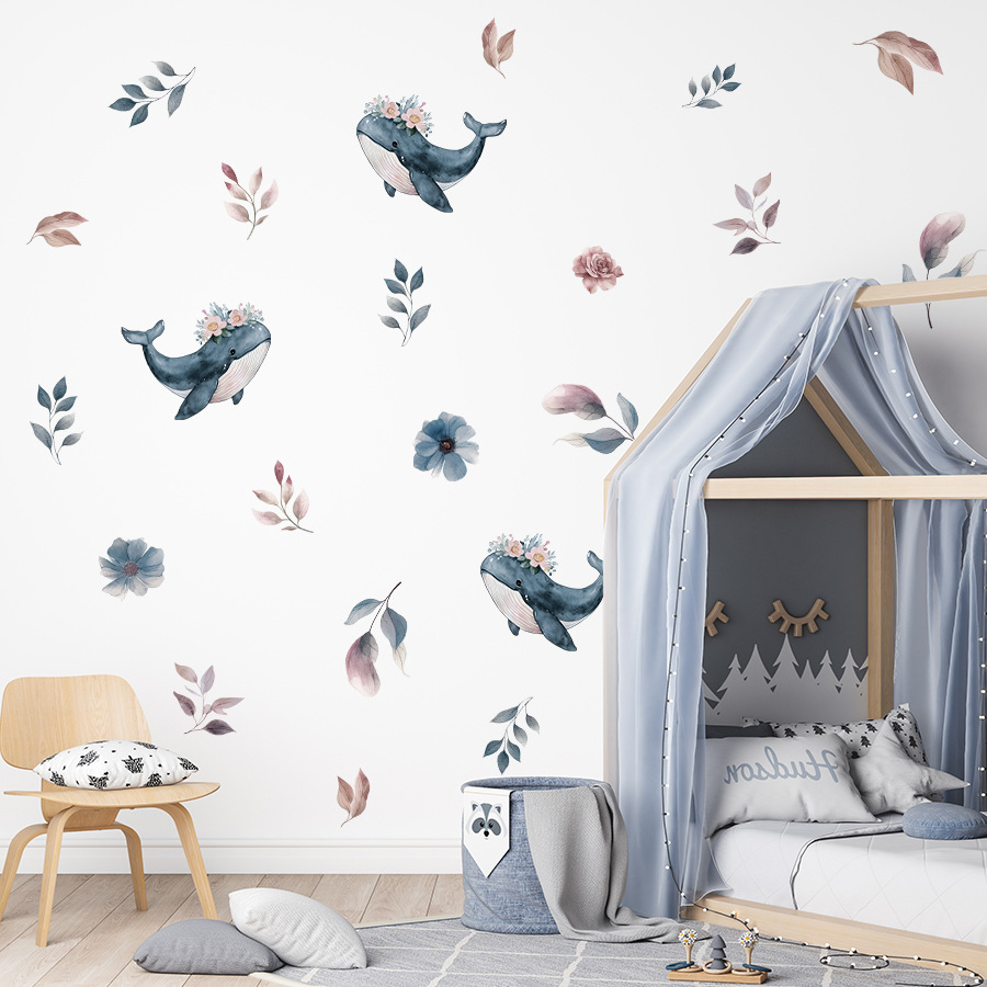바다 고래 해초 꽃 Ins 바람 자체 접착 벽 스티커 침실 연구 기숙사 욕실 장식 스티커 BR3336H