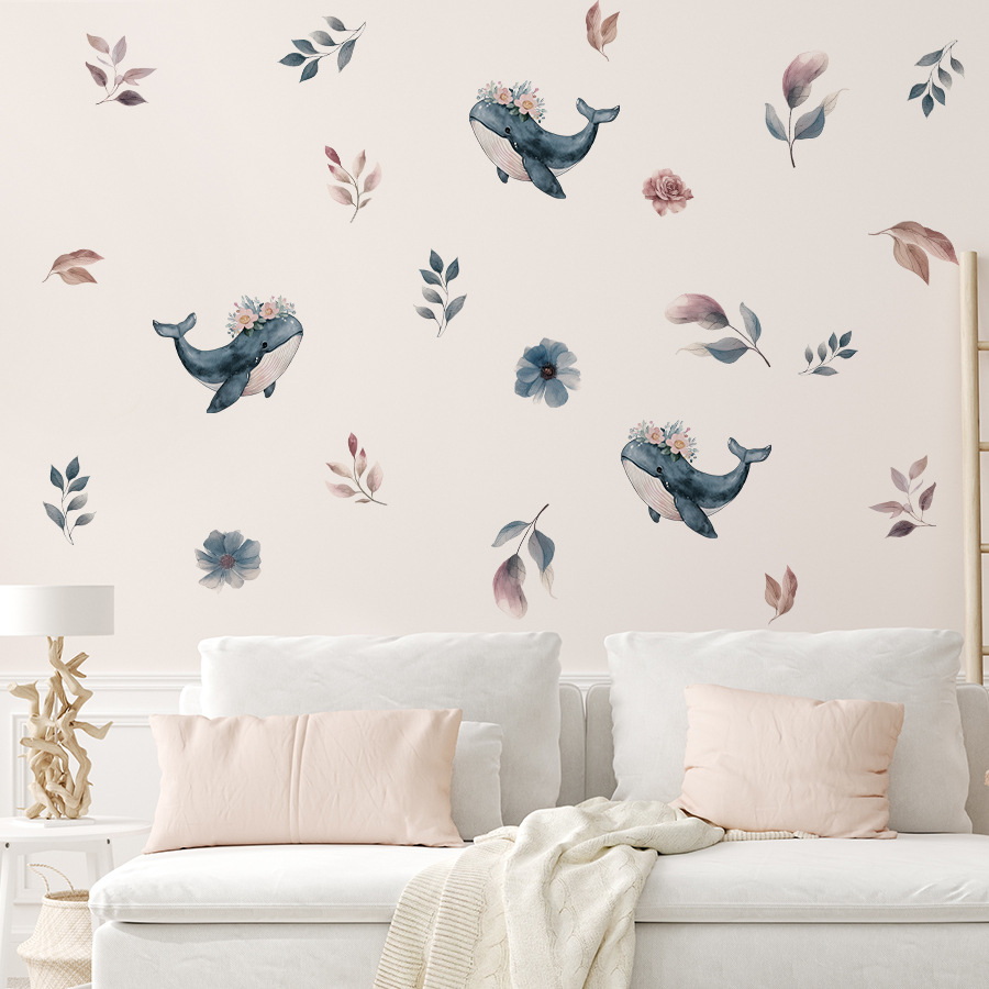 바다 고래 해초 꽃 Ins 바람 자체 접착 벽 스티커 침실 연구 기숙사 욕실 장식 스티커 BR3336H스토어 가기