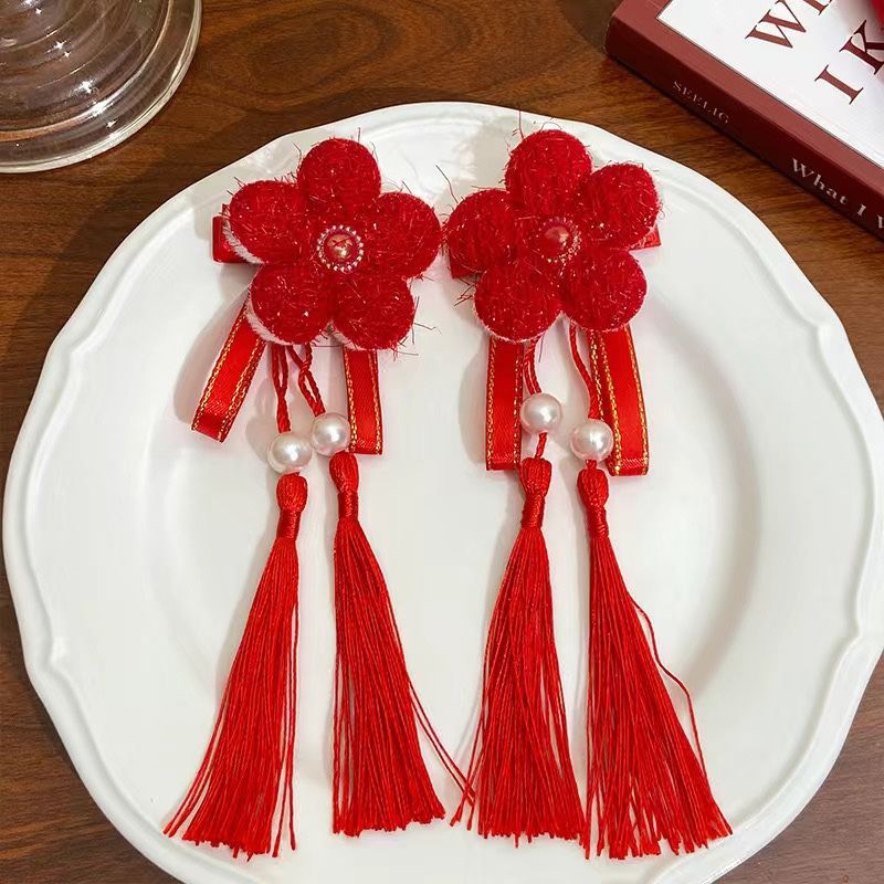 • 새틴 레드 래빗 벨 태슬 머리핀(쌍)