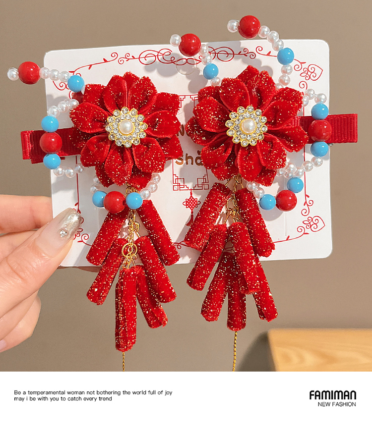 • ❤진주 붉은 꽃 화려한 구슬 폭죽 술 한 쌍