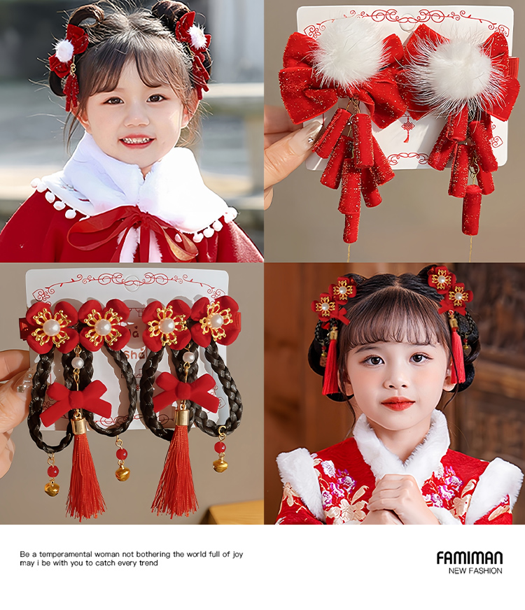 설날 헤어 액세서리 어린이 골동품 헤어핀 중국 스타일 어린 소녀의 활 술 사이드 클립 걸스 한푸 헤드웨어스토어 가기
