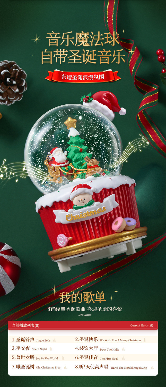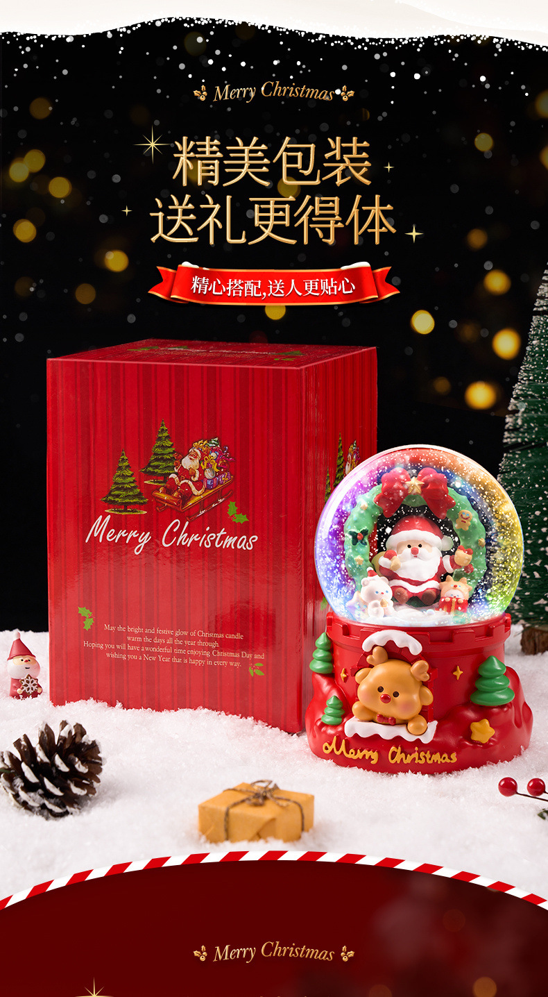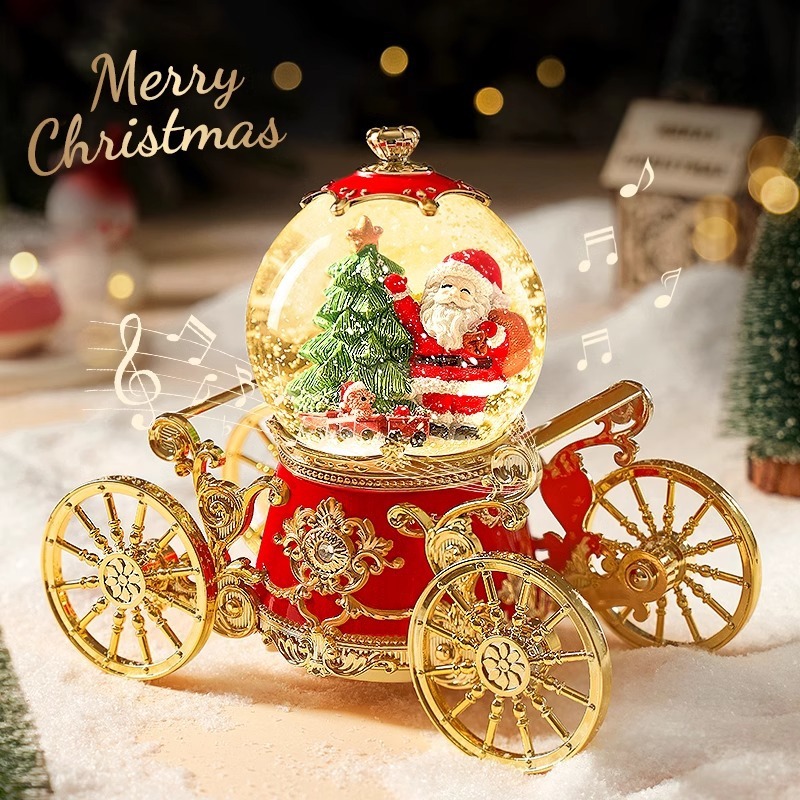 크리스마스 선물 마차 크리스탈 볼 음악 상자 장식품 음악 상자 눈 산타 클로스 어린이를위한 작은 선물