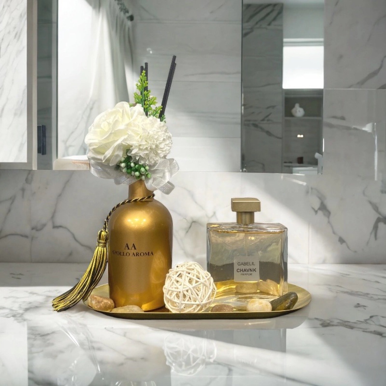 가벼운 럭셔리 모델 룸 대리석 타일 욕실 장식품 화장실 장식 욕실 쇼룸 욕실 캐비닛 트레이