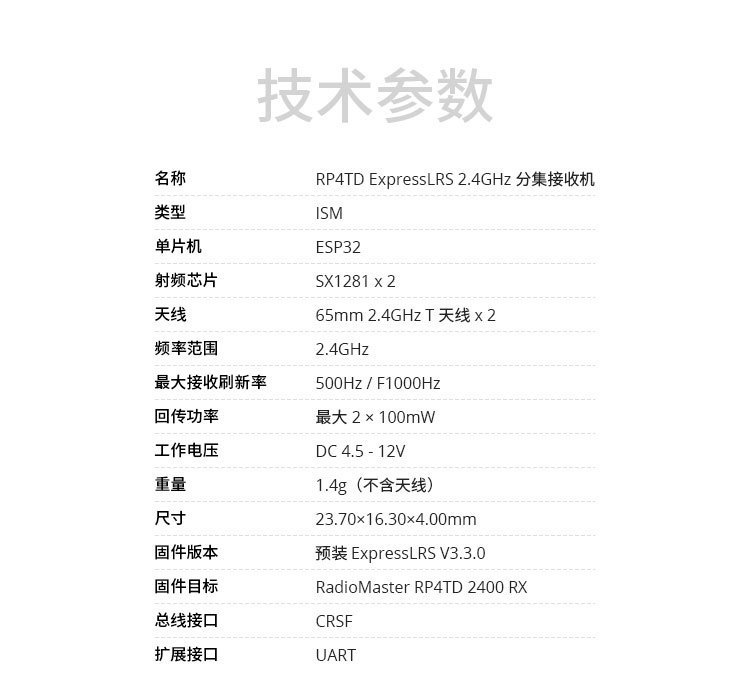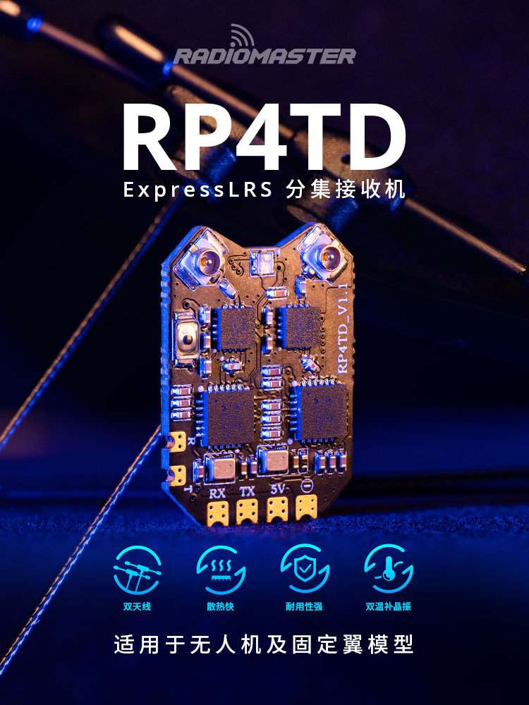 라디오 마스터 RP4TD ELRS 2.4G 다양성 수신기 고정 날개 UAV 수신기 RP4