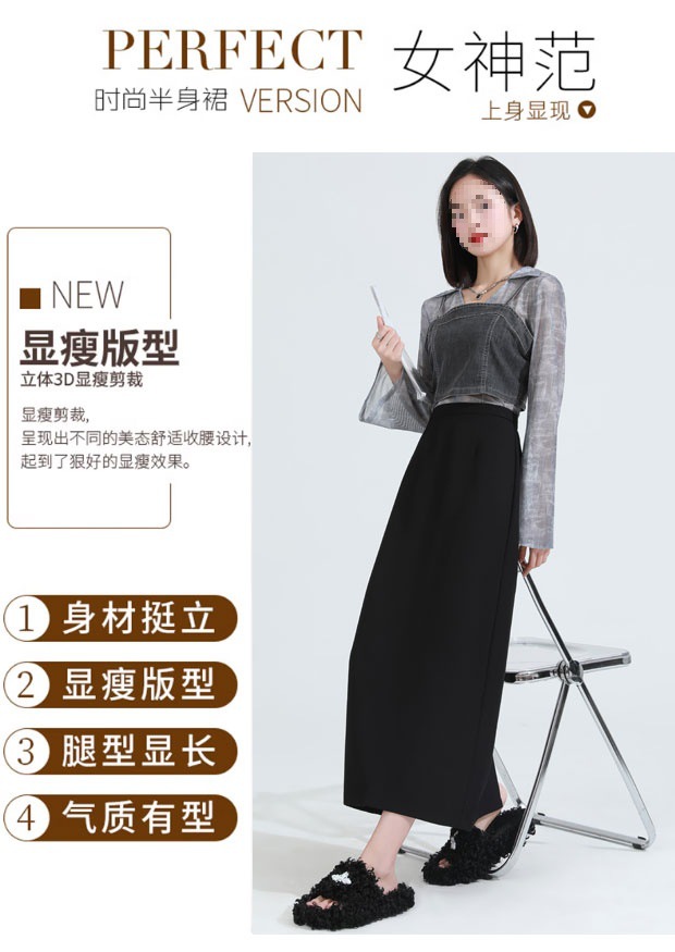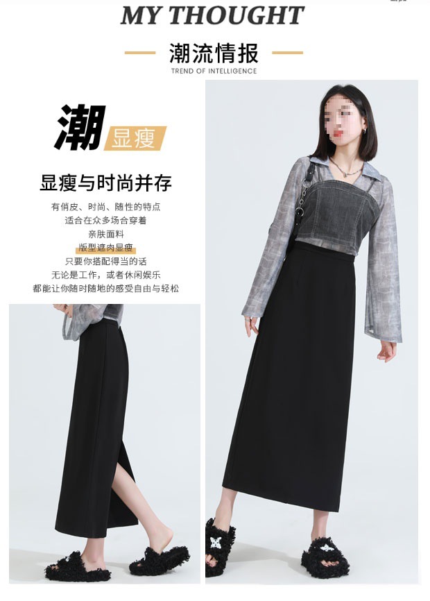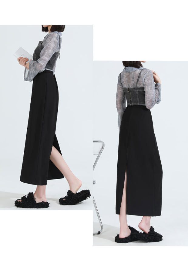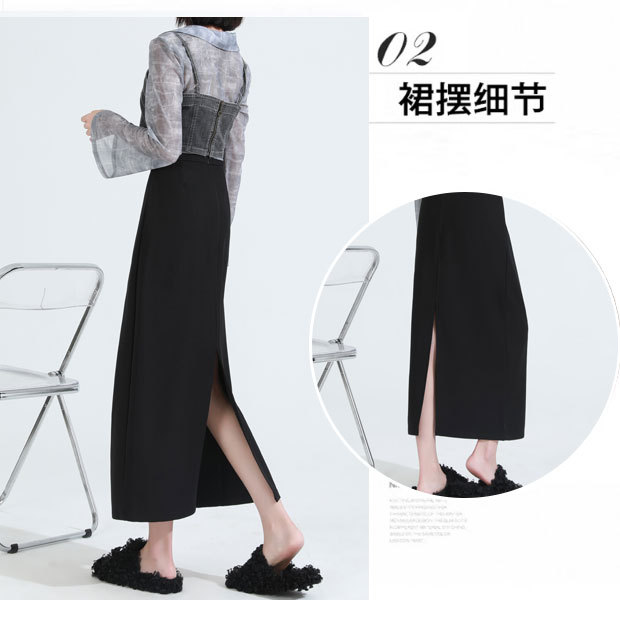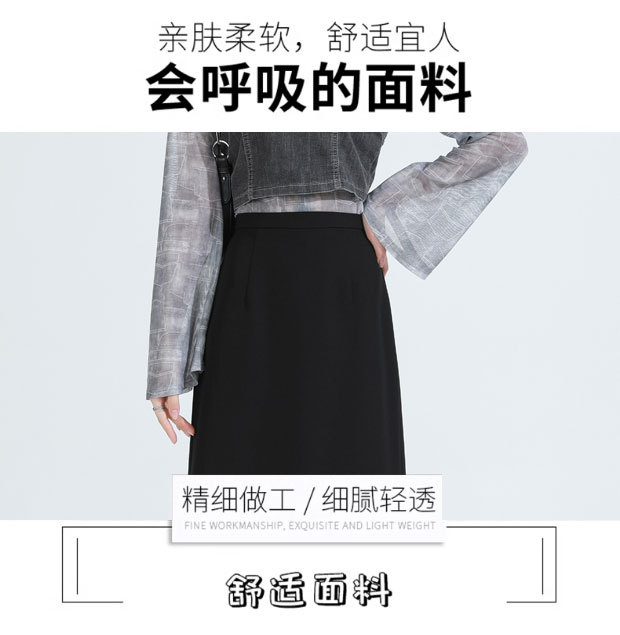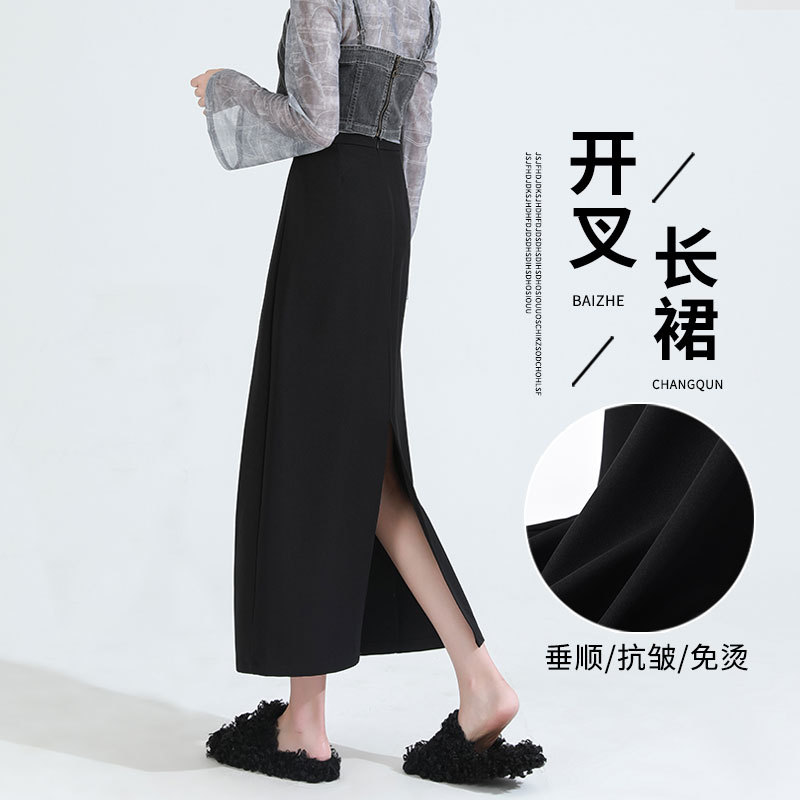 검은 세트 치마 여성의 봄과 가을 2025 새로운 높은 허리 긴 A-문자 스트레이트 튜브 분할 우아한 엉덩이 치마스토어 가기