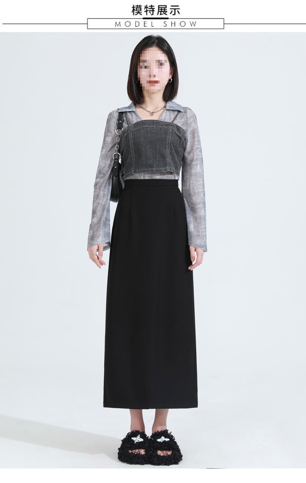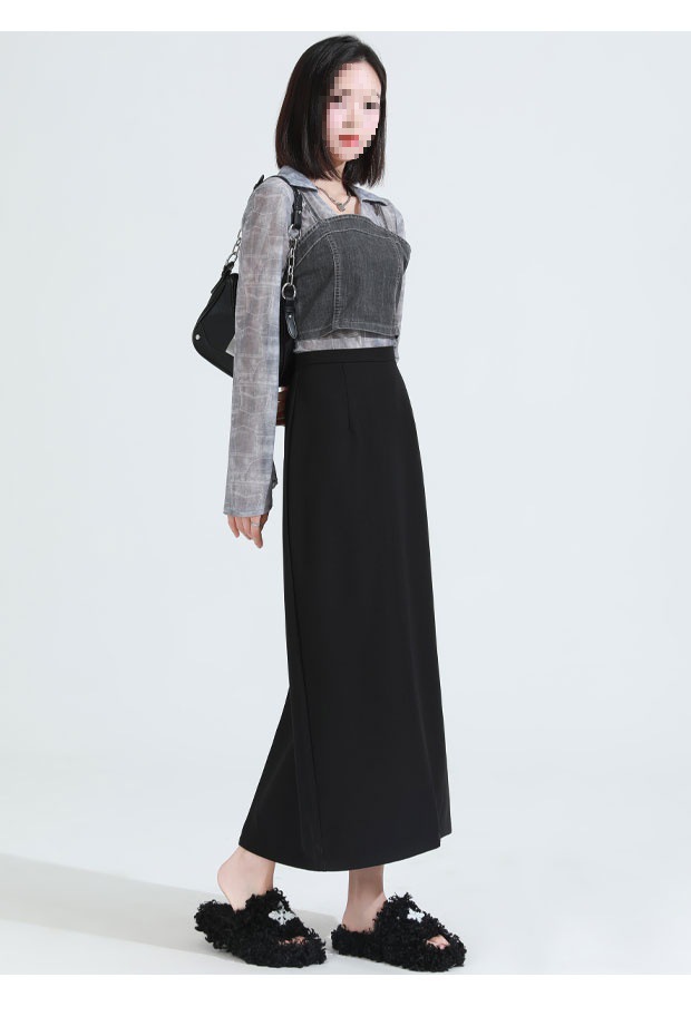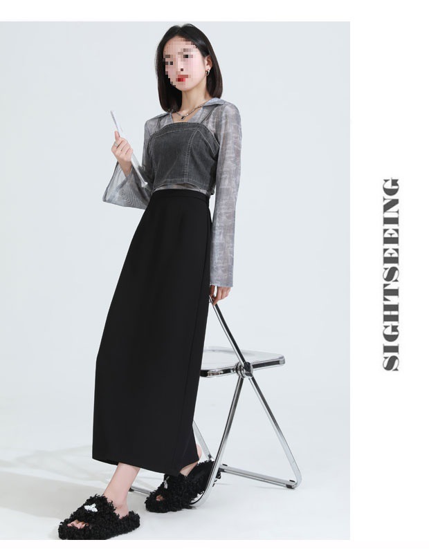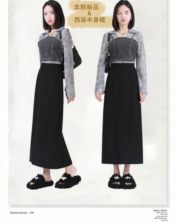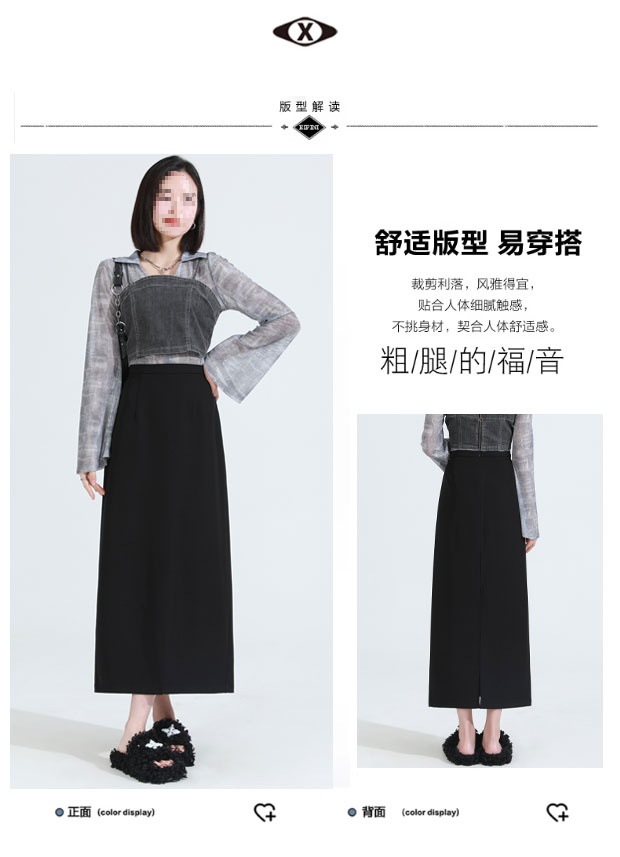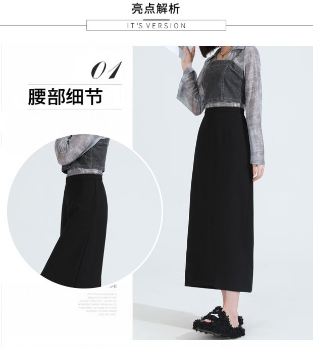 검은 세트 치마 여성의 봄과 가을 2025 새로운 높은 허리 긴 A-문자 스트레이트 튜브 분할 우아한 엉덩이 치마스토어 가기