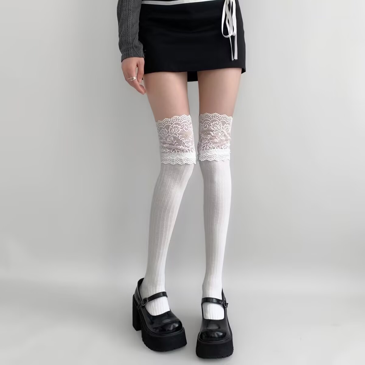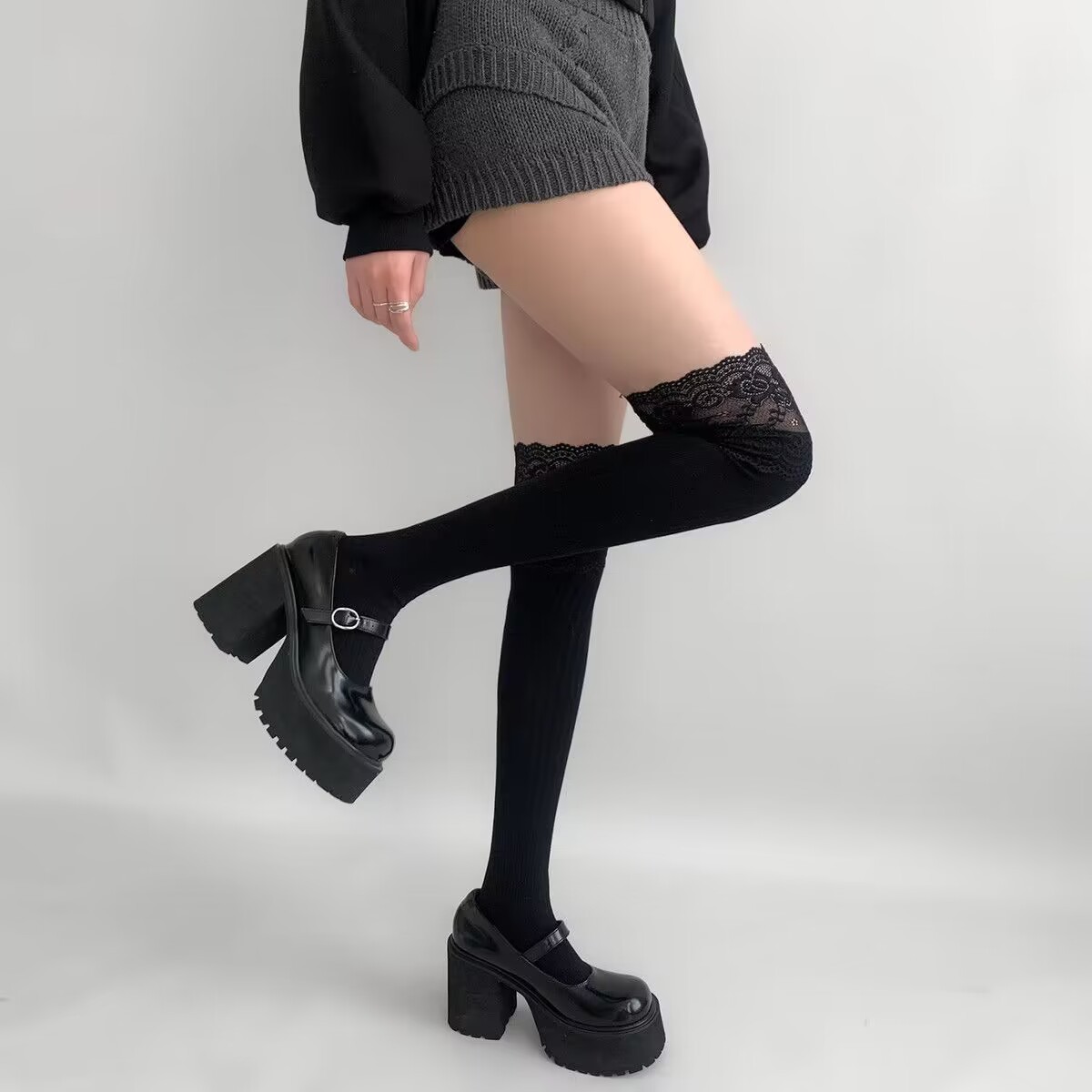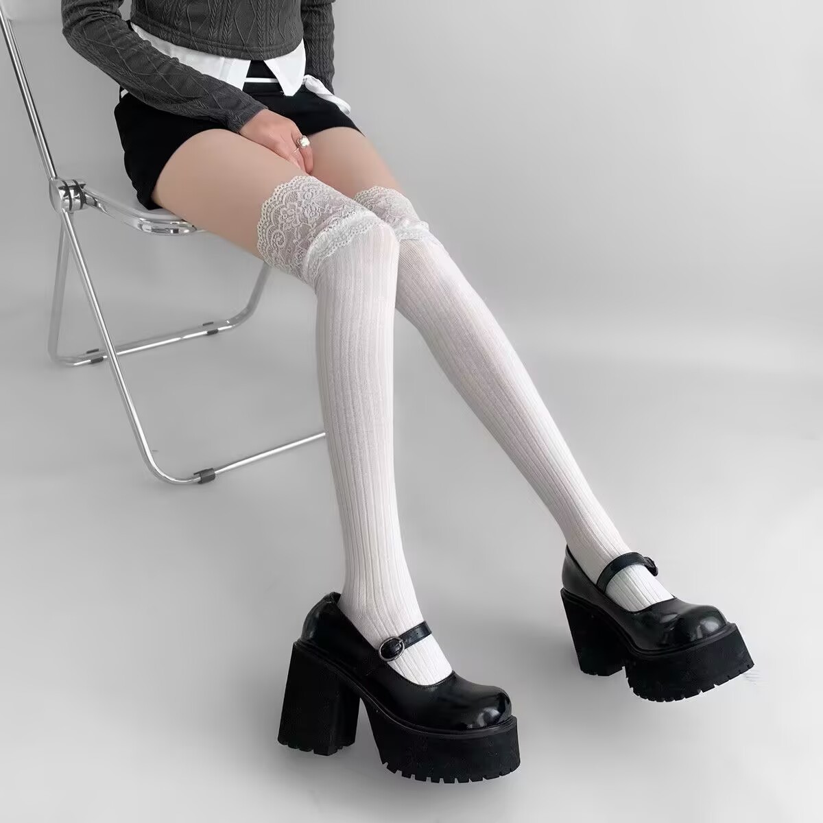 사계절 레이스 오버 더 무릎 롱 부츠 양말 수직 패턴 힙 양말 슬리밍 허벅지 양말 Jk 일본 스위트스토어 가기