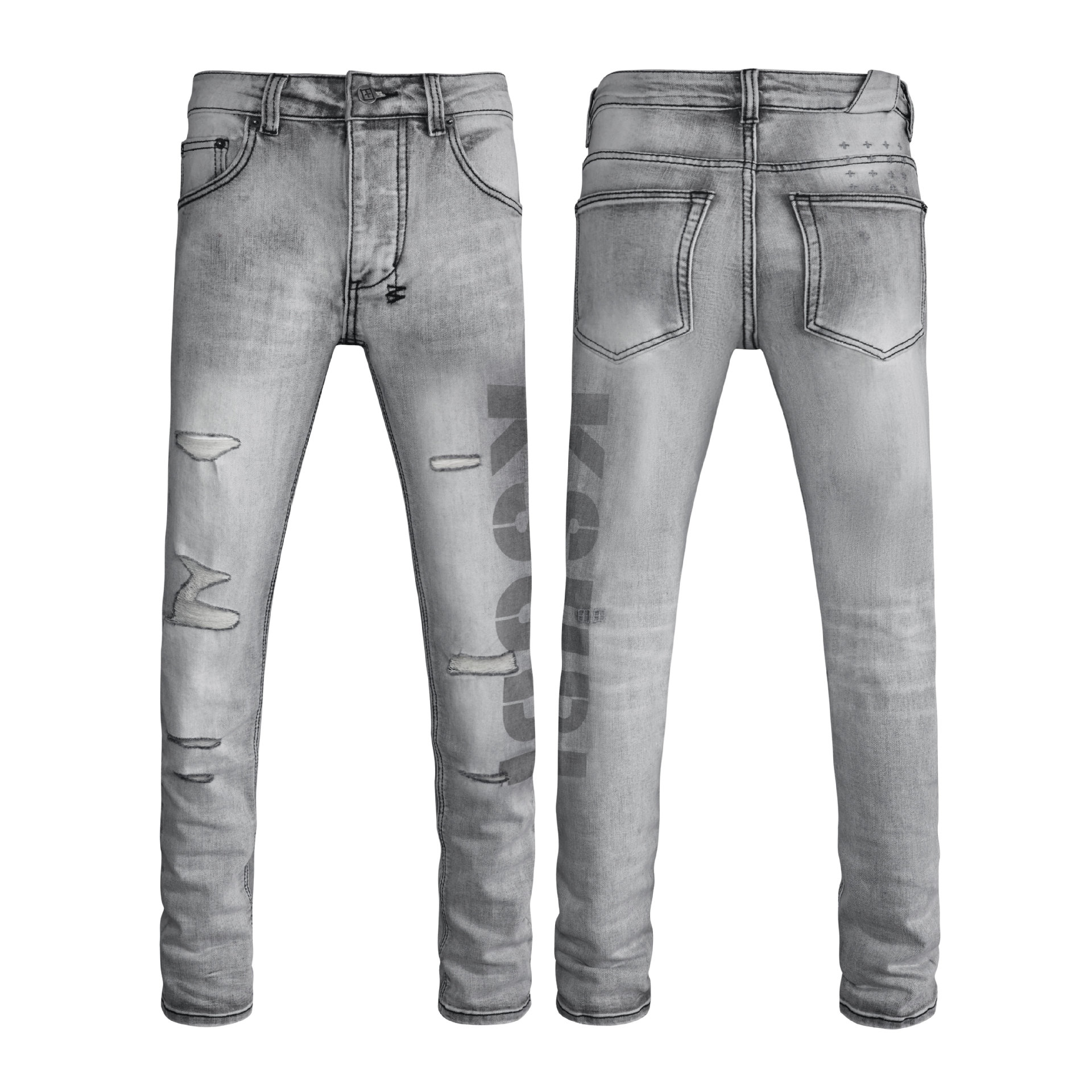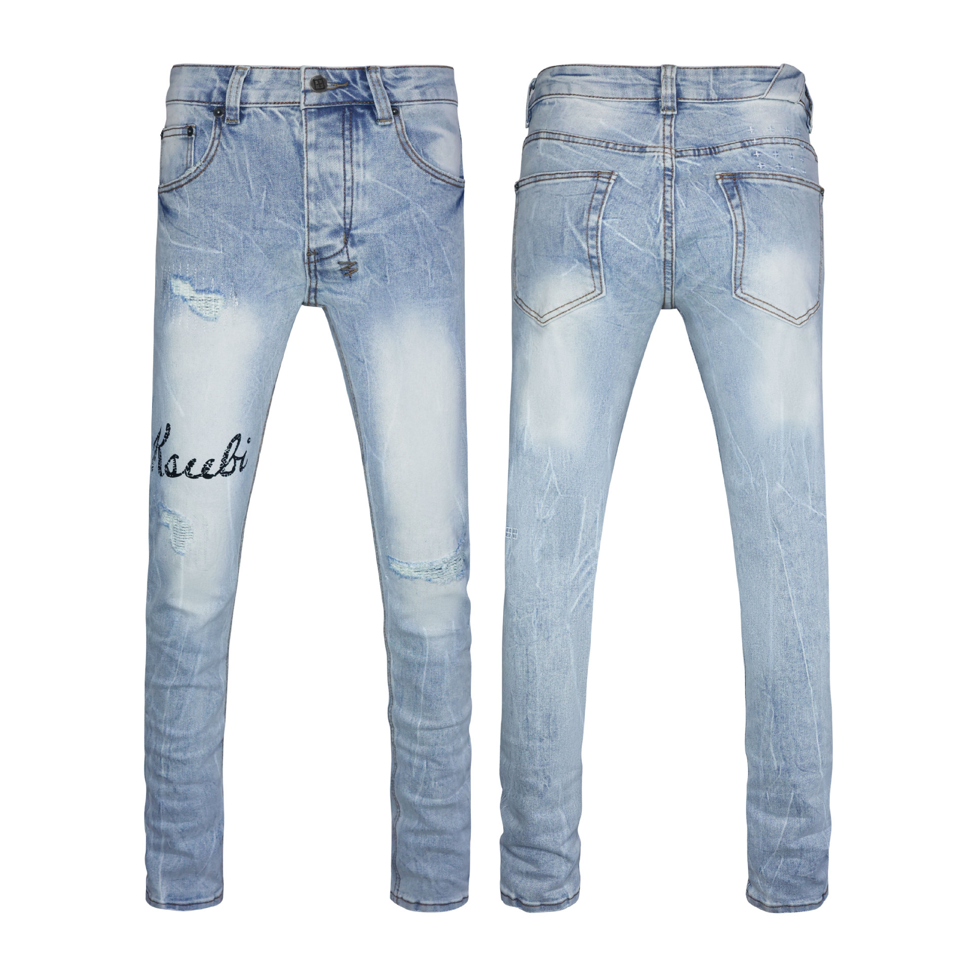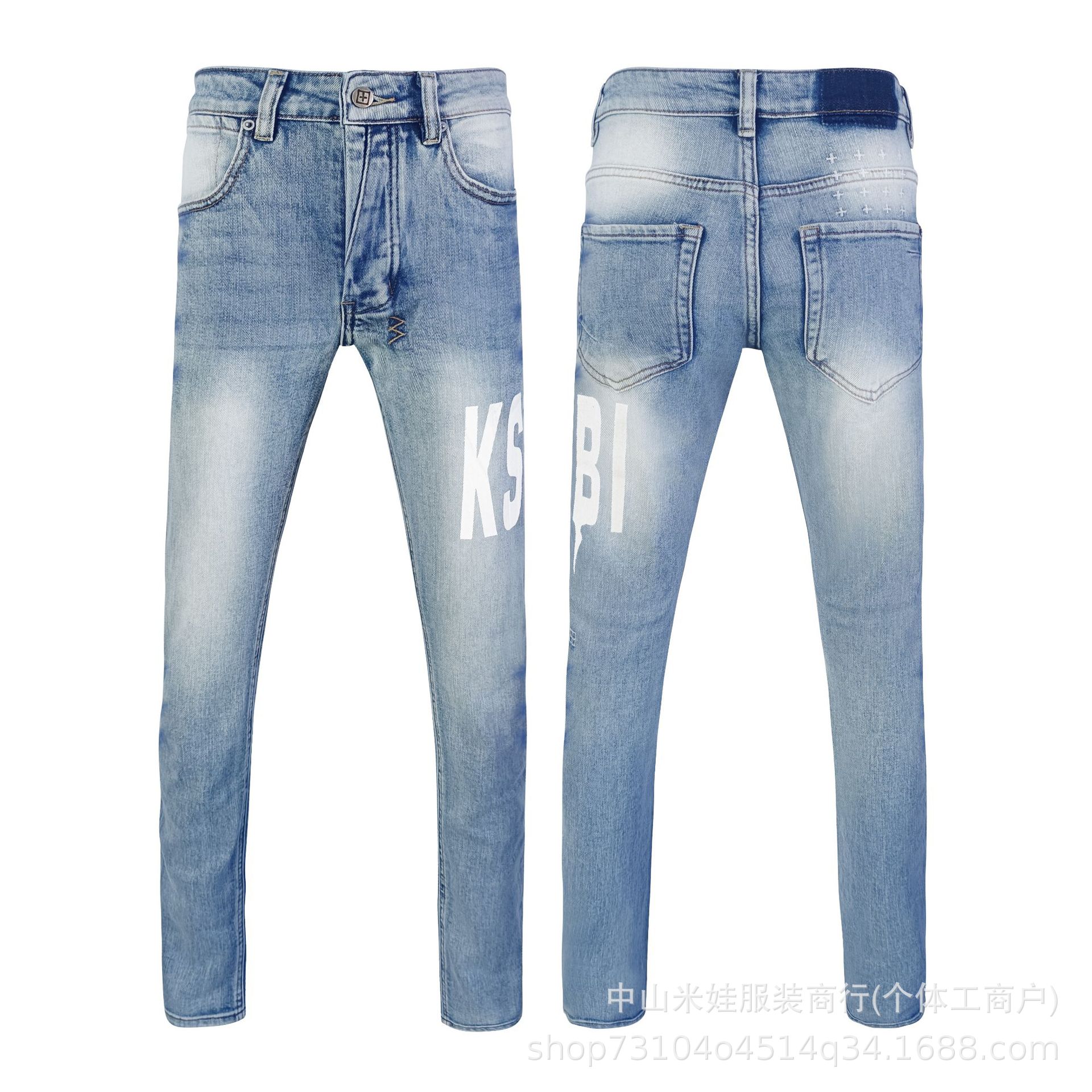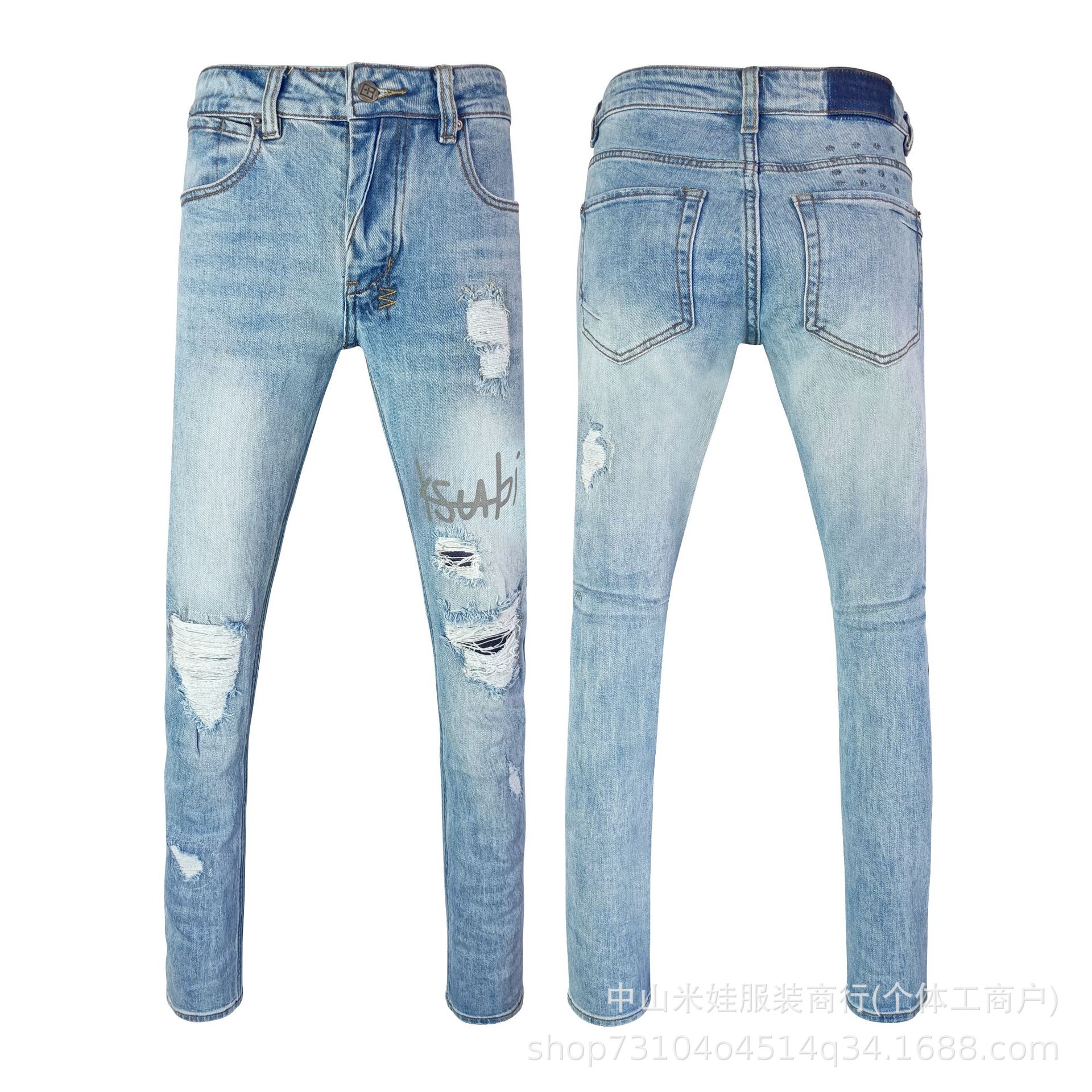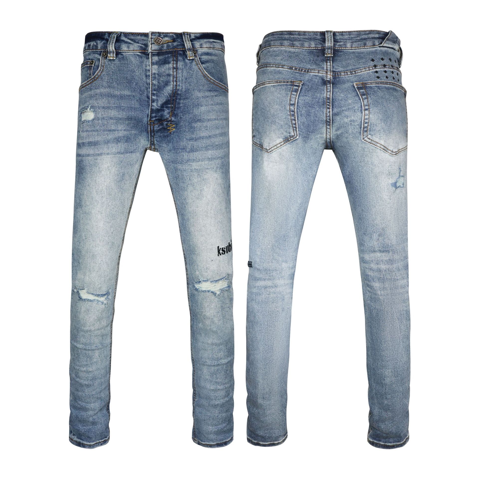 하이 엔드 브랜드 남성 KSB 청바지 스트레이트 리핑 스트레치 아메리칸 스타일 하이 스트리트 캐주얼 남성 청바지 재고