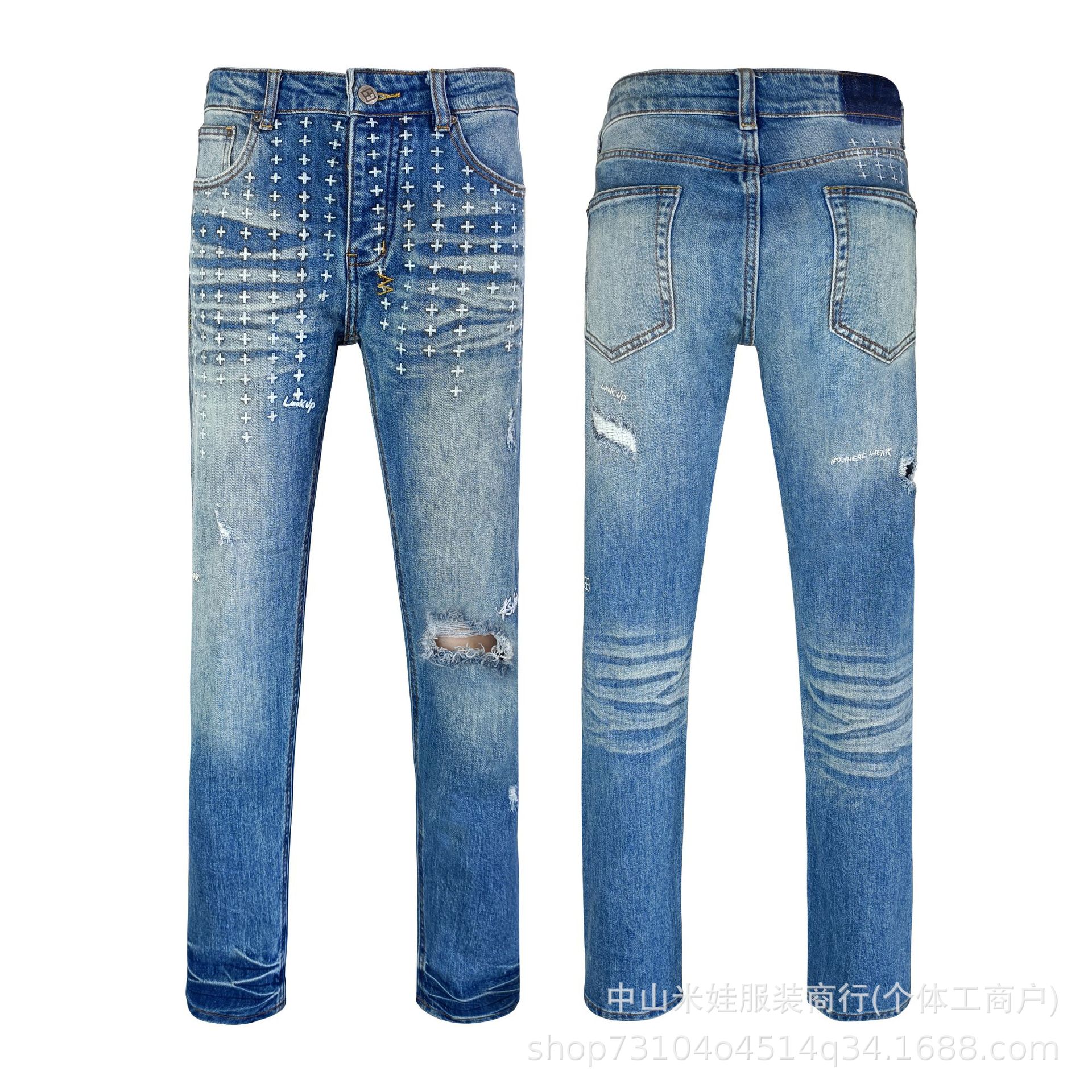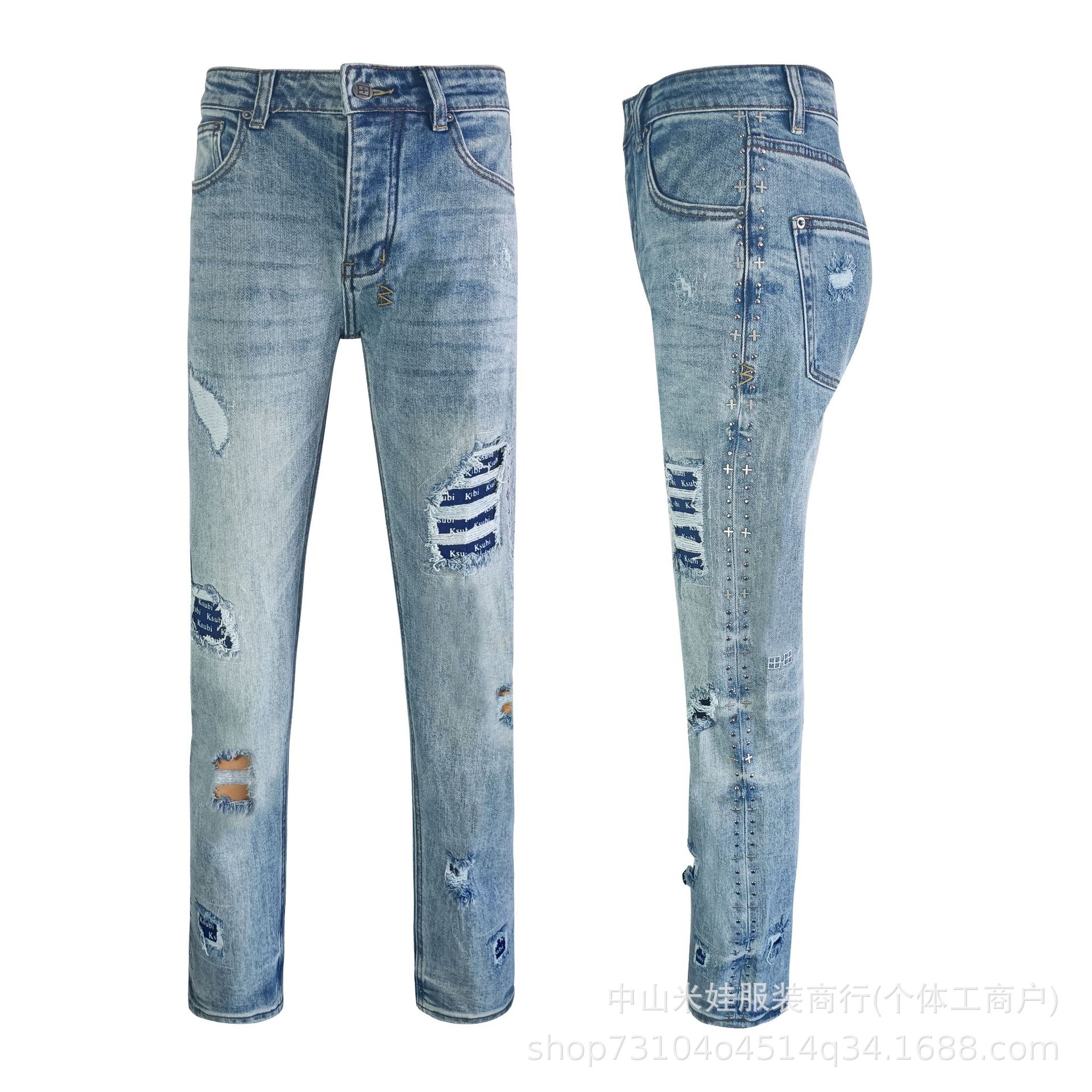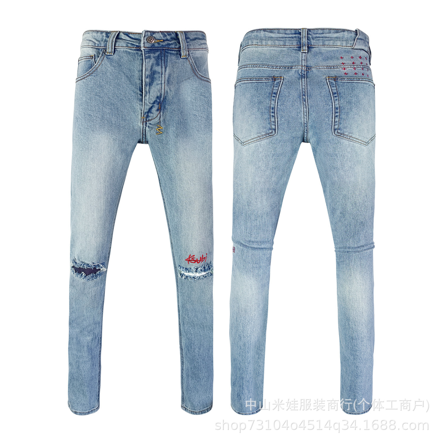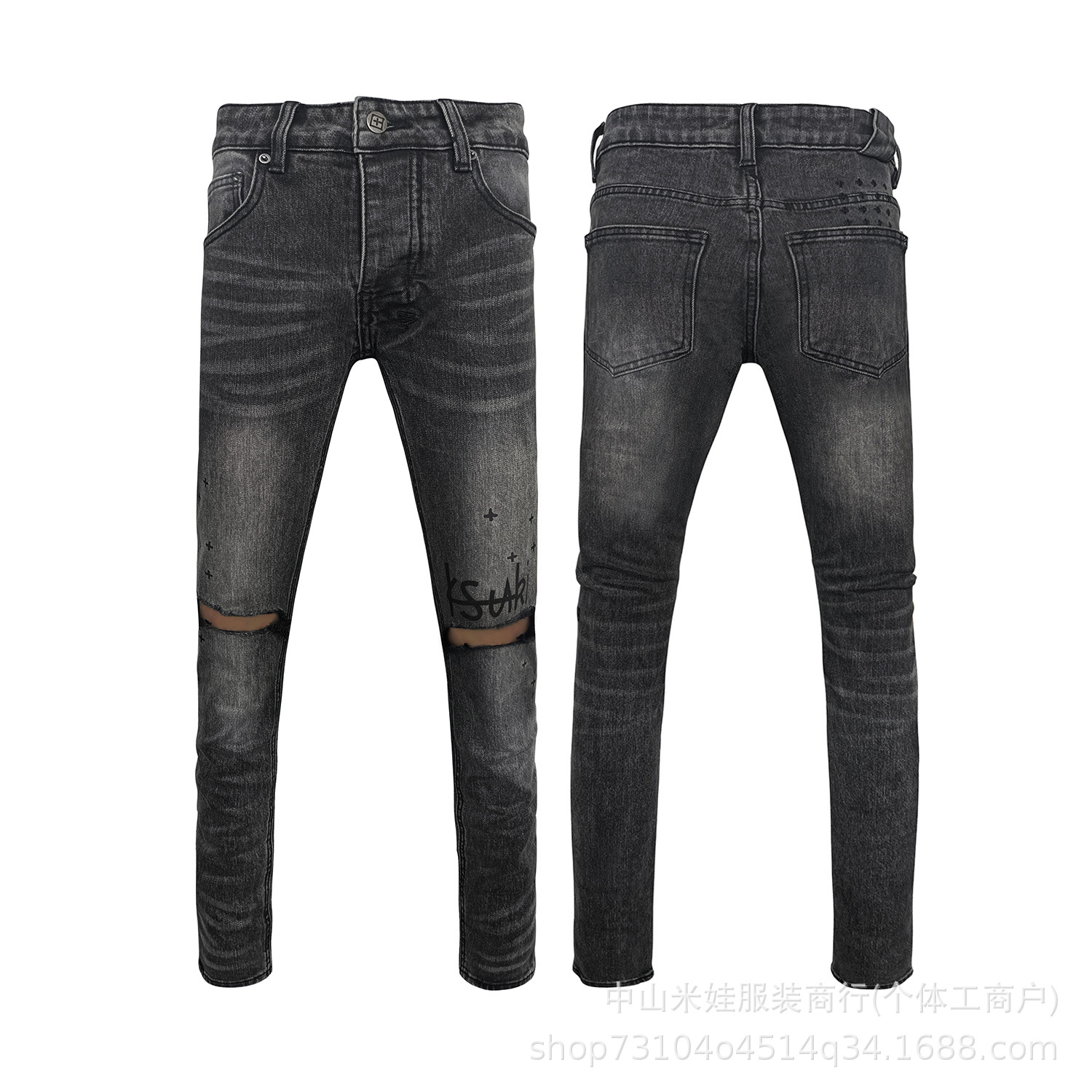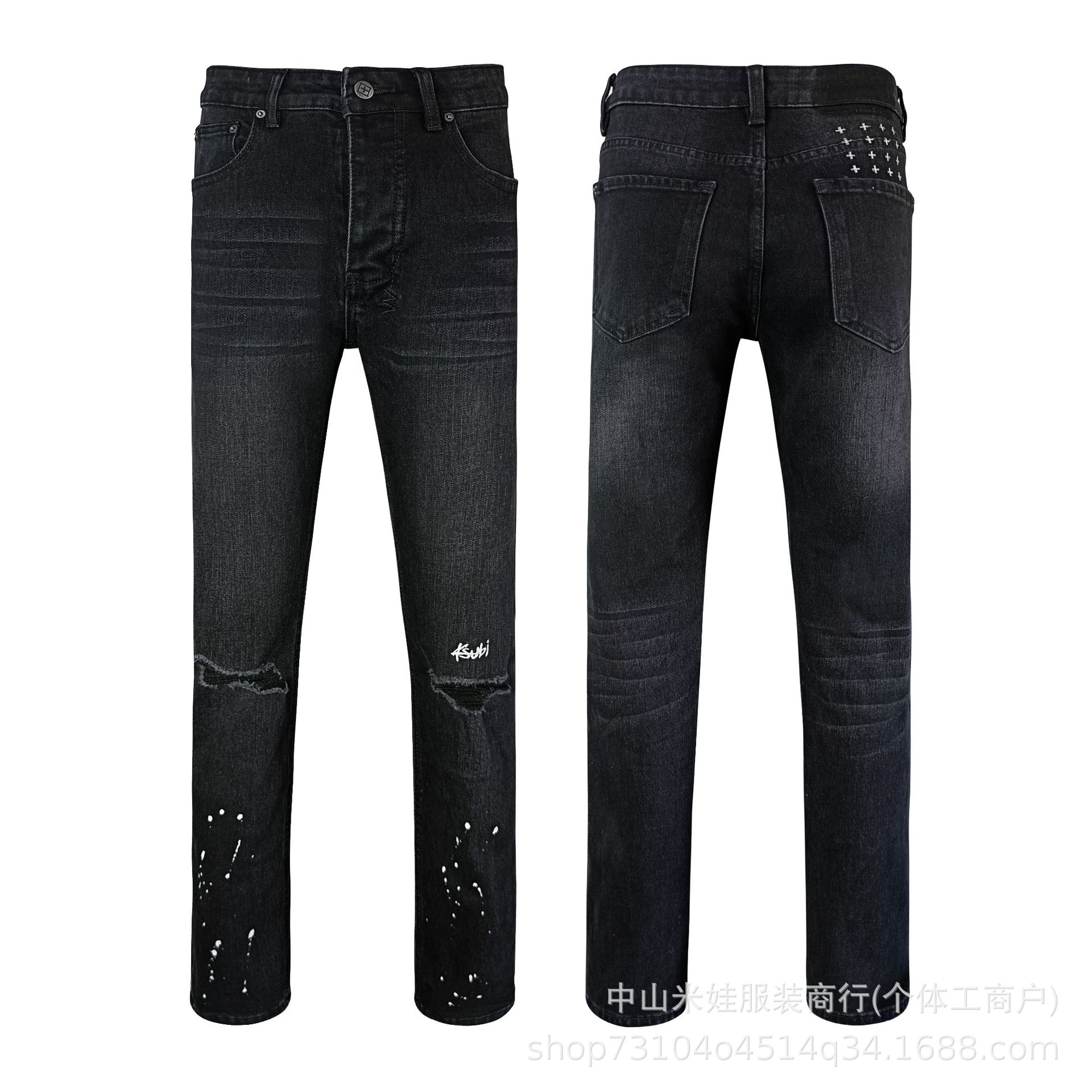 하이 엔드 브랜드 남성 KSB 청바지 스트레이트 리핑 스트레치 아메리칸 스타일 하이 스트리트 캐주얼 남성 청바지 재고