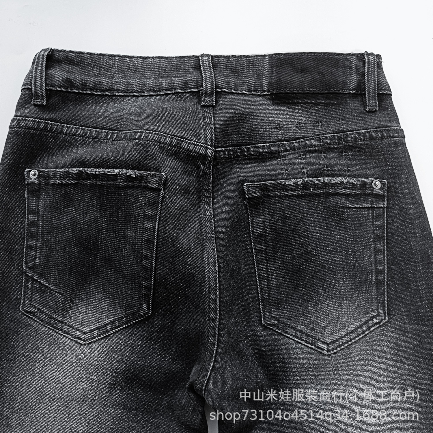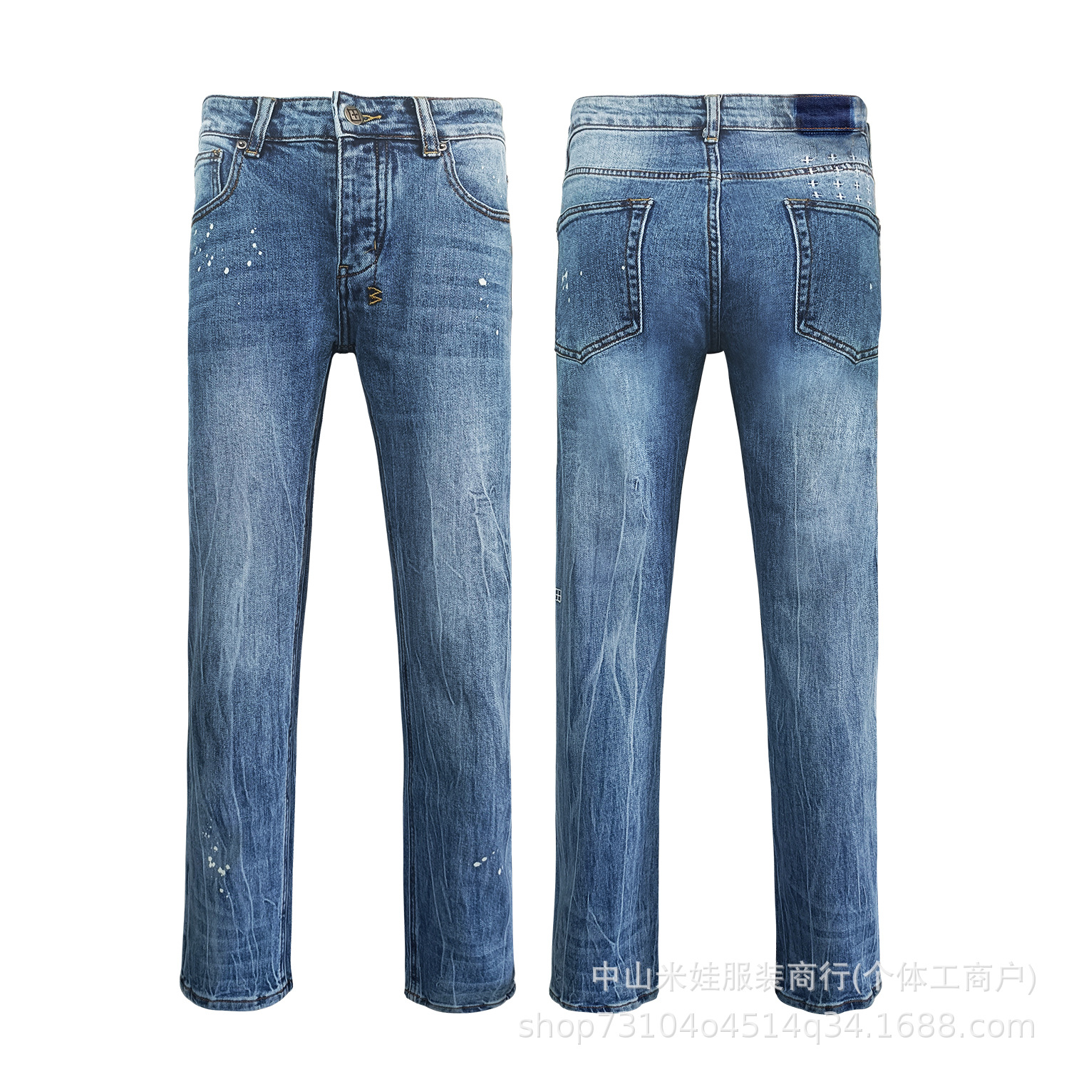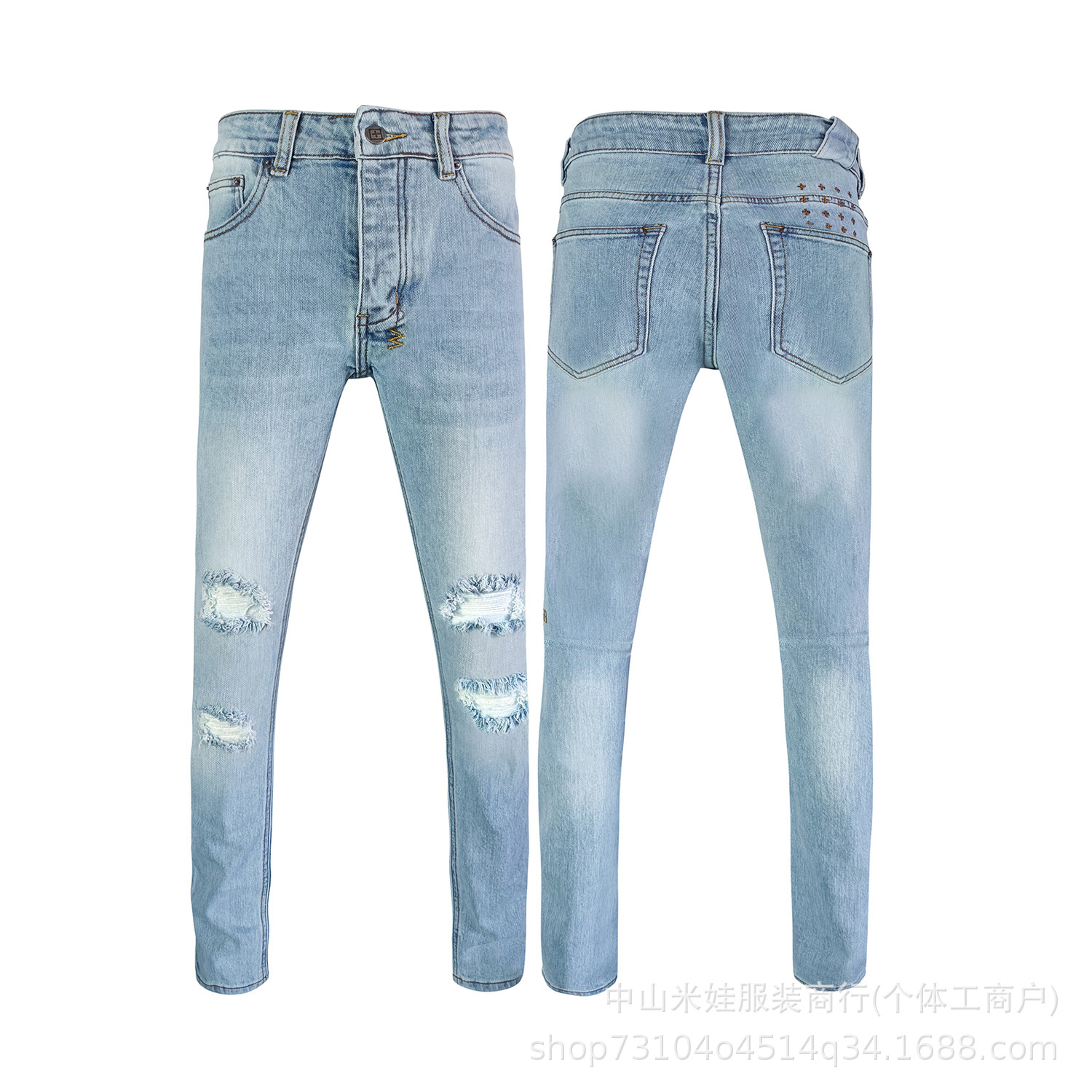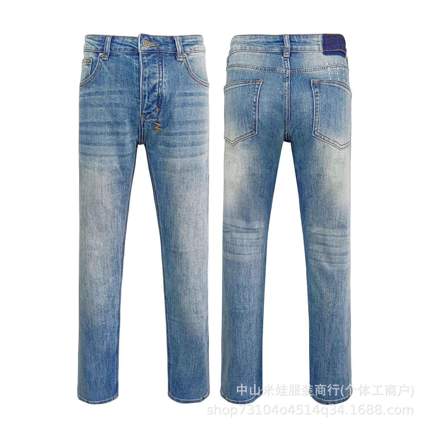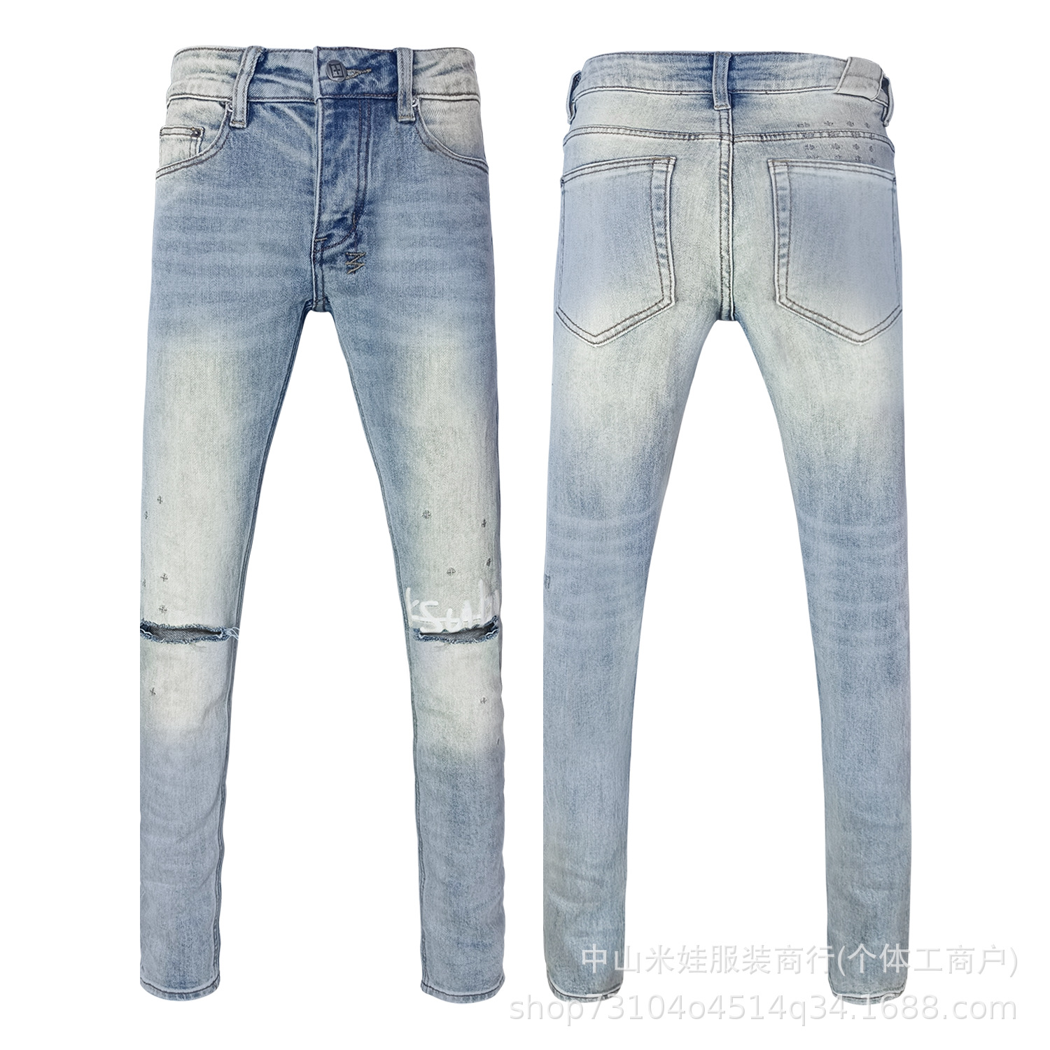 하이 엔드 브랜드 남성 KSB 청바지 스트레이트 리핑 스트레치 아메리칸 스타일 하이 스트리트 캐주얼 남성 청바지 재고