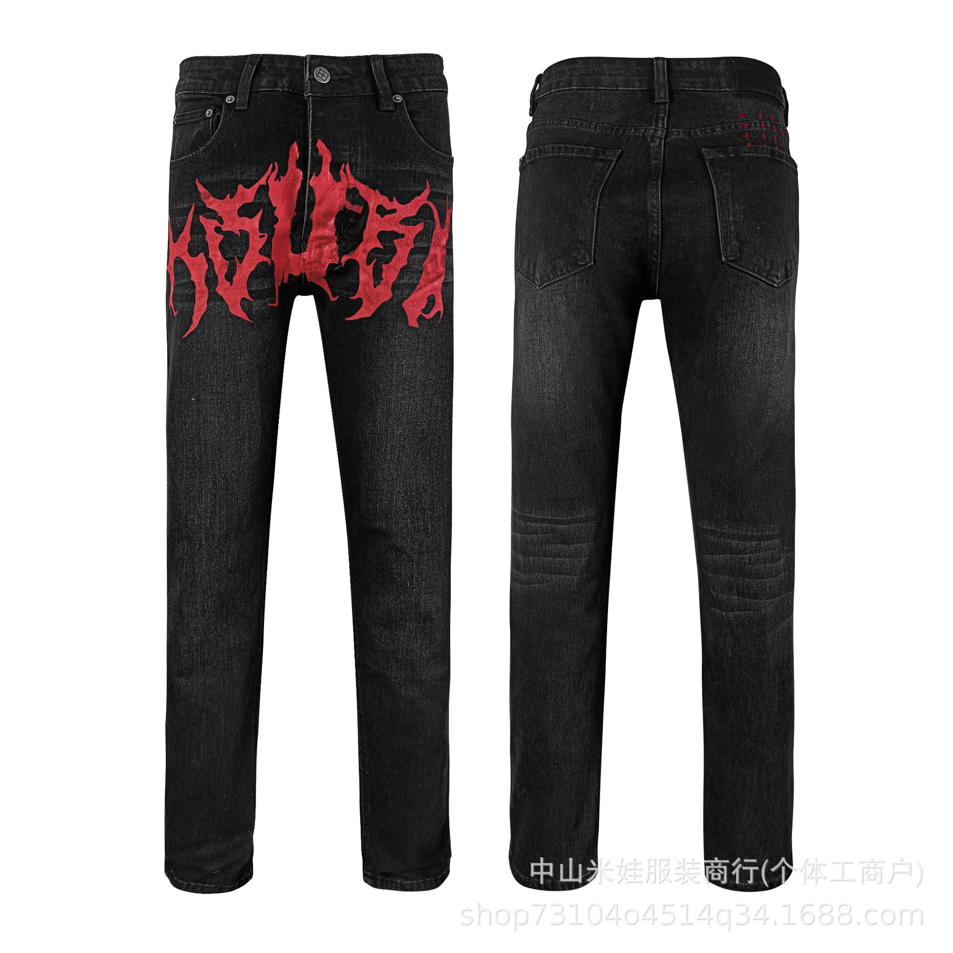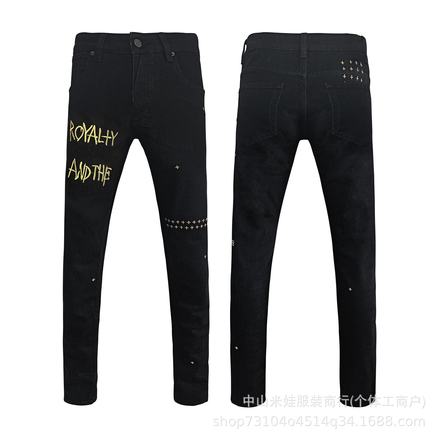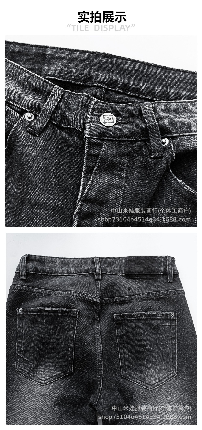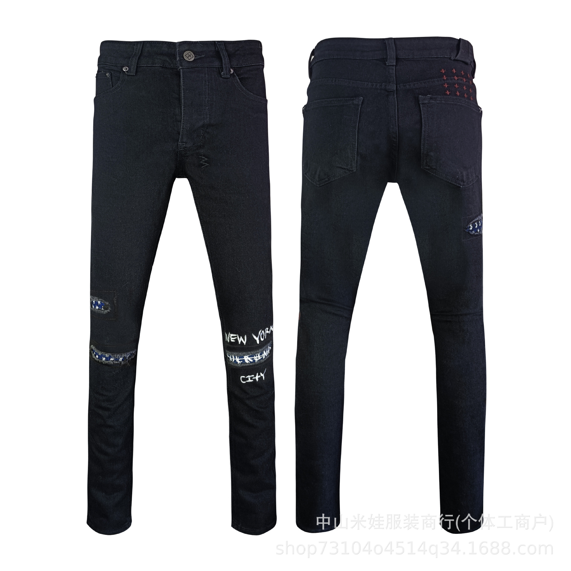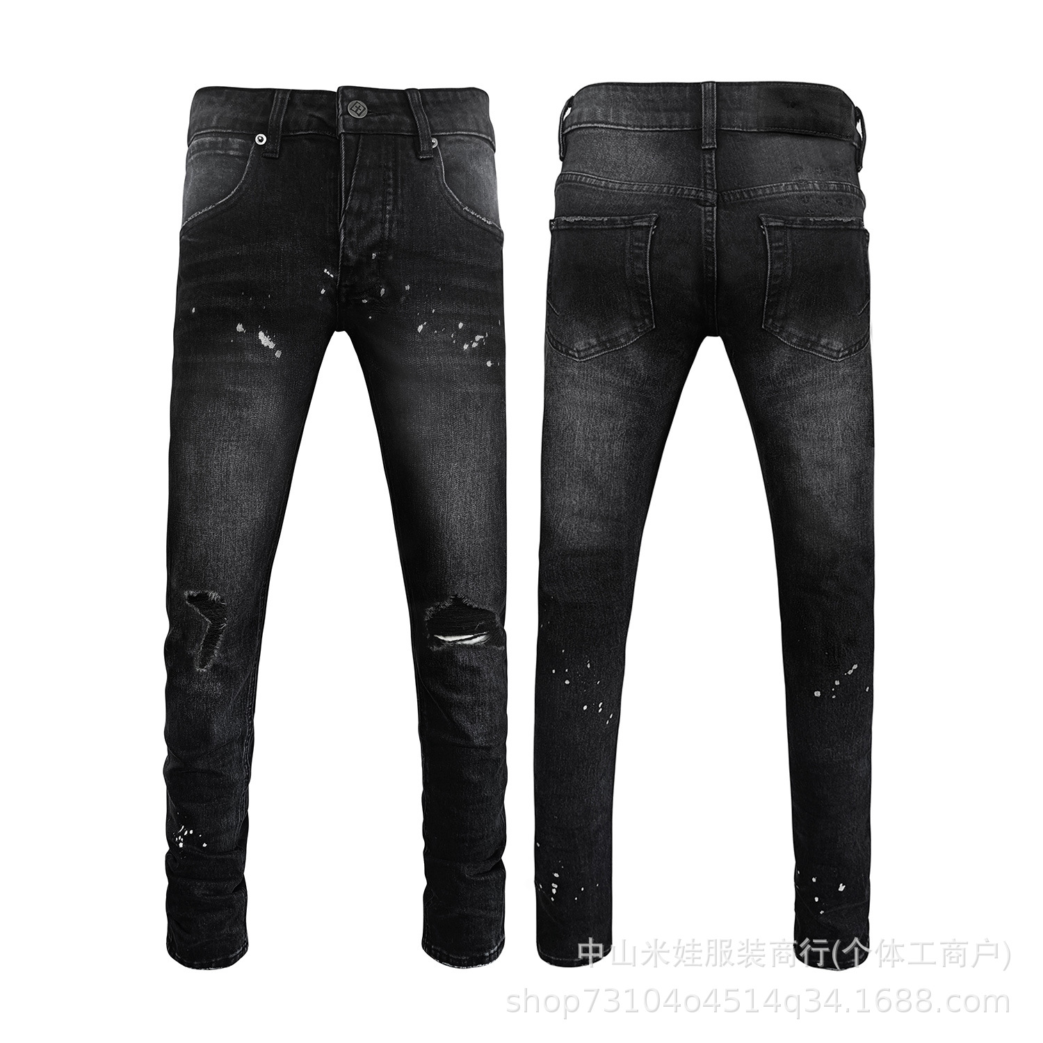 하이 엔드 브랜드 남성 KSB 청바지 스트레이트 리핑 스트레치 아메리칸 스타일 하이 스트리트 캐주얼 남성 청바지 재고