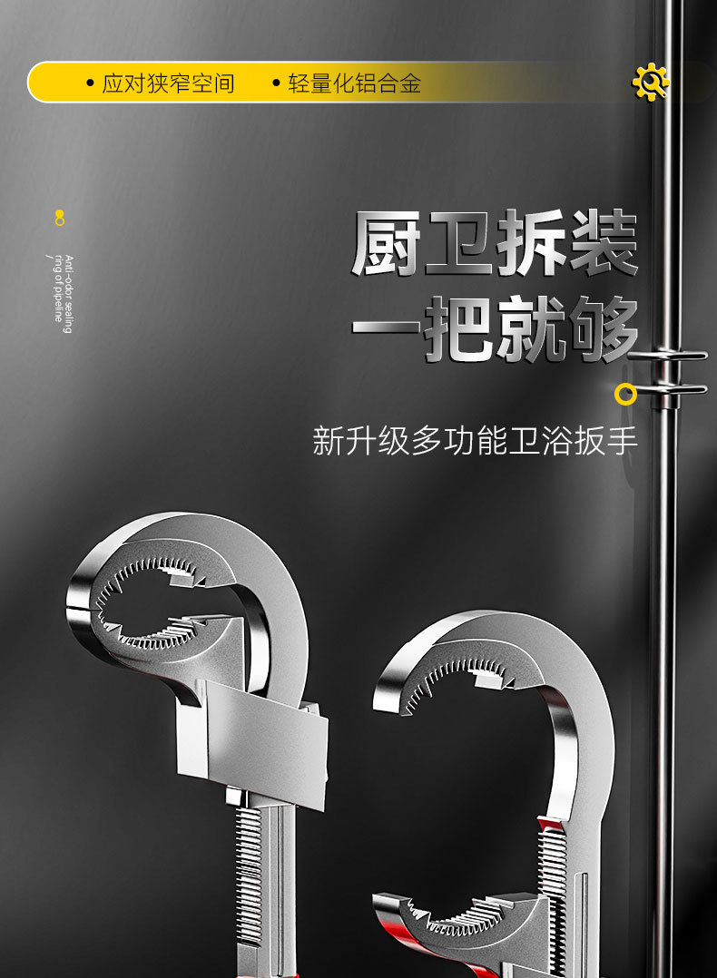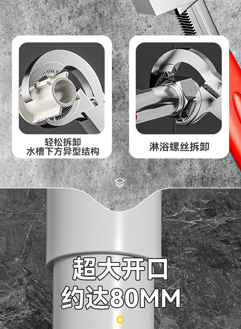 다기능 대형 개구부 알루미늄 합금 싱크대 욕실 렌치 주방 및 욕실 분해 배관 설치 도구 욕실 렌치스토어 가기