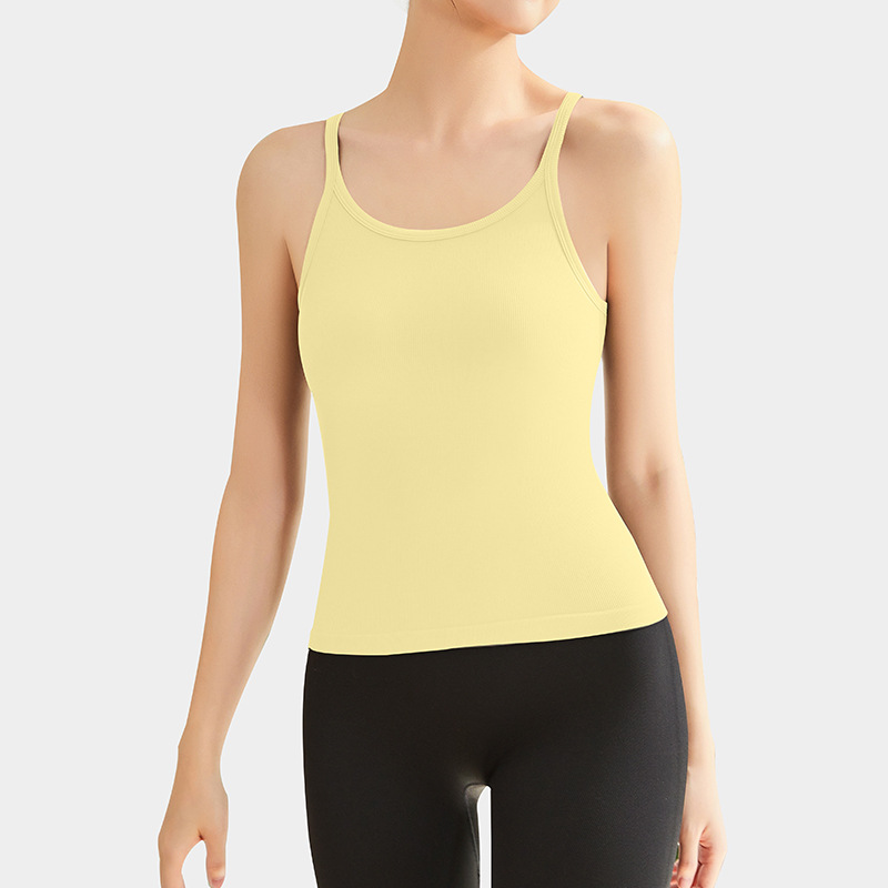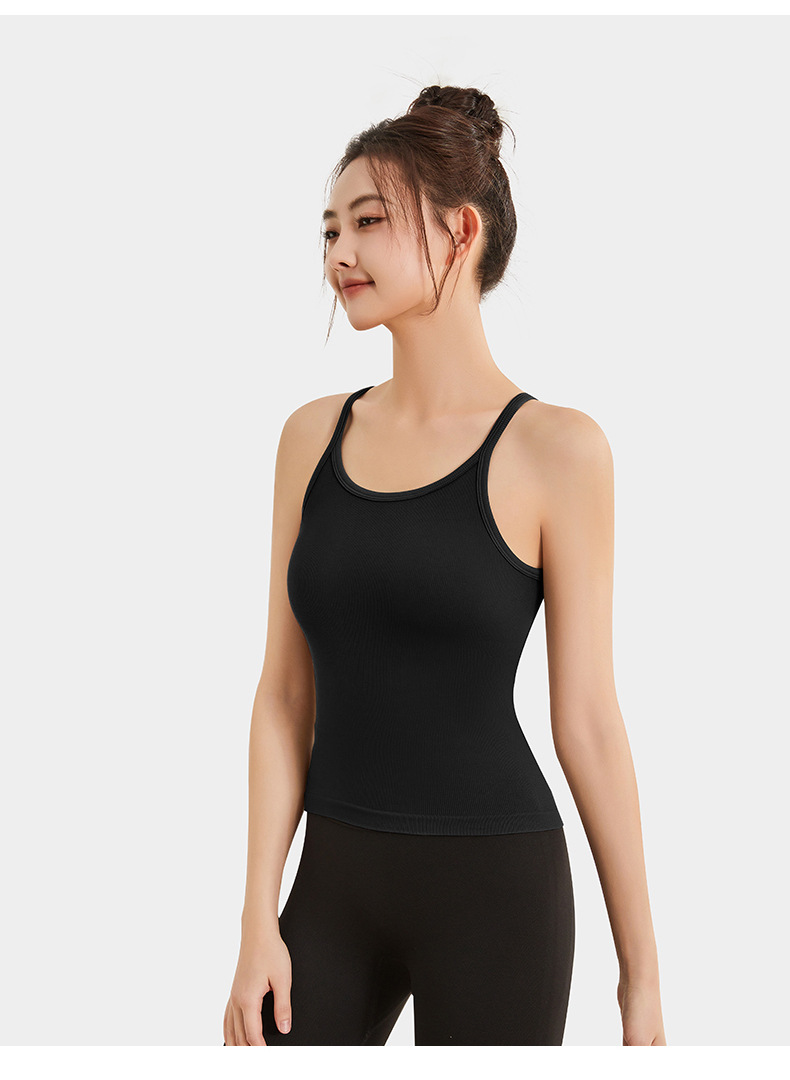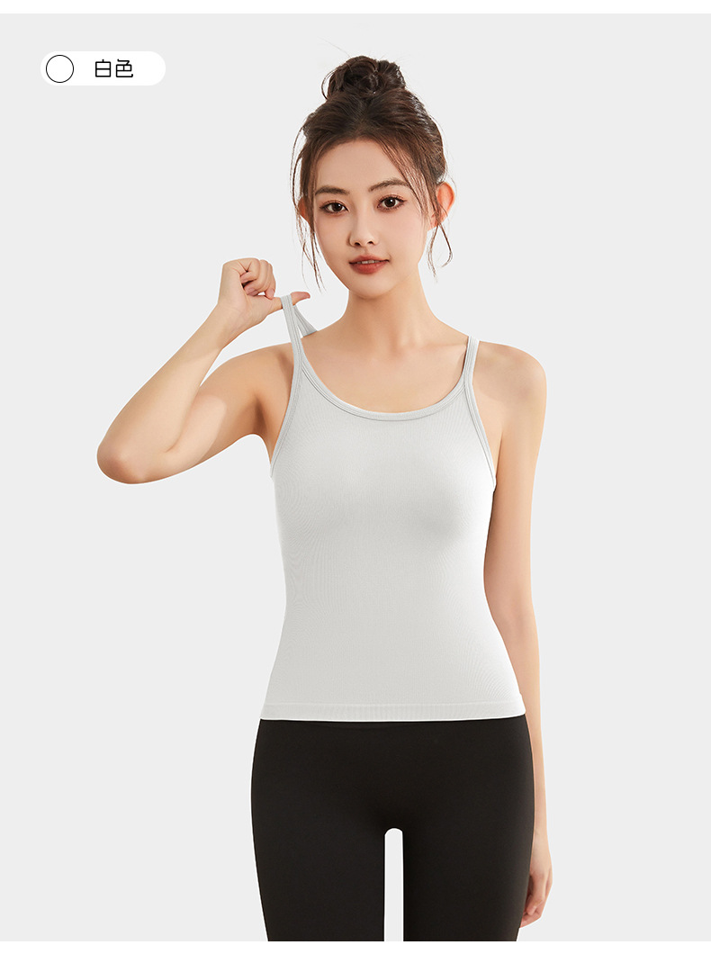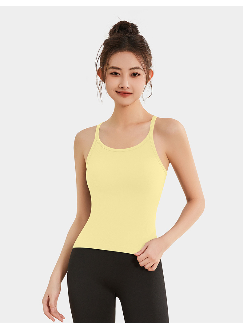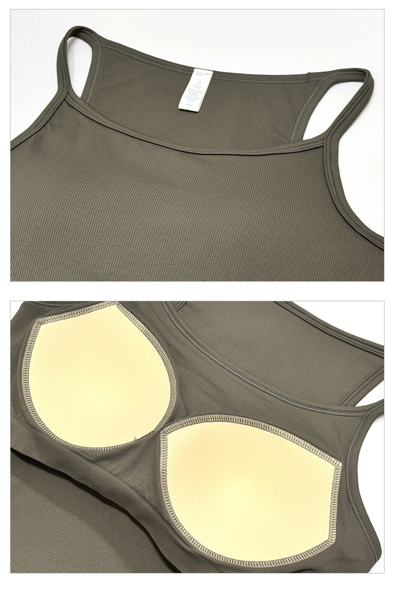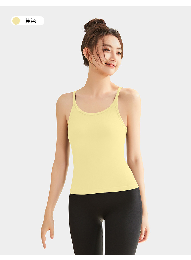 여성용 여름용 라운드넥 요가 상의, 민소매 스포츠 조끼, 다용도 서스펜더, 가슴 패드 포함, 외부 착용 가능스토어 가기