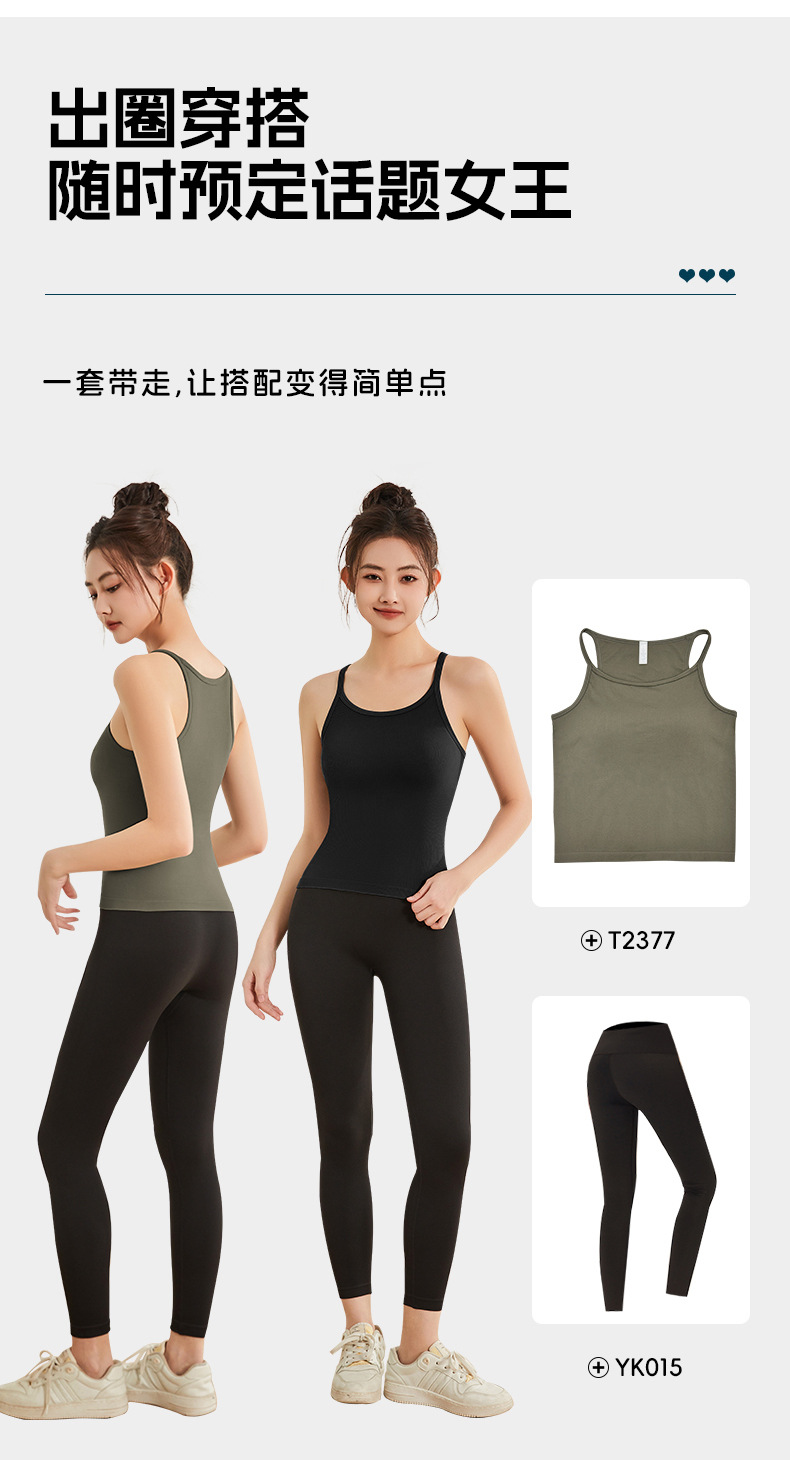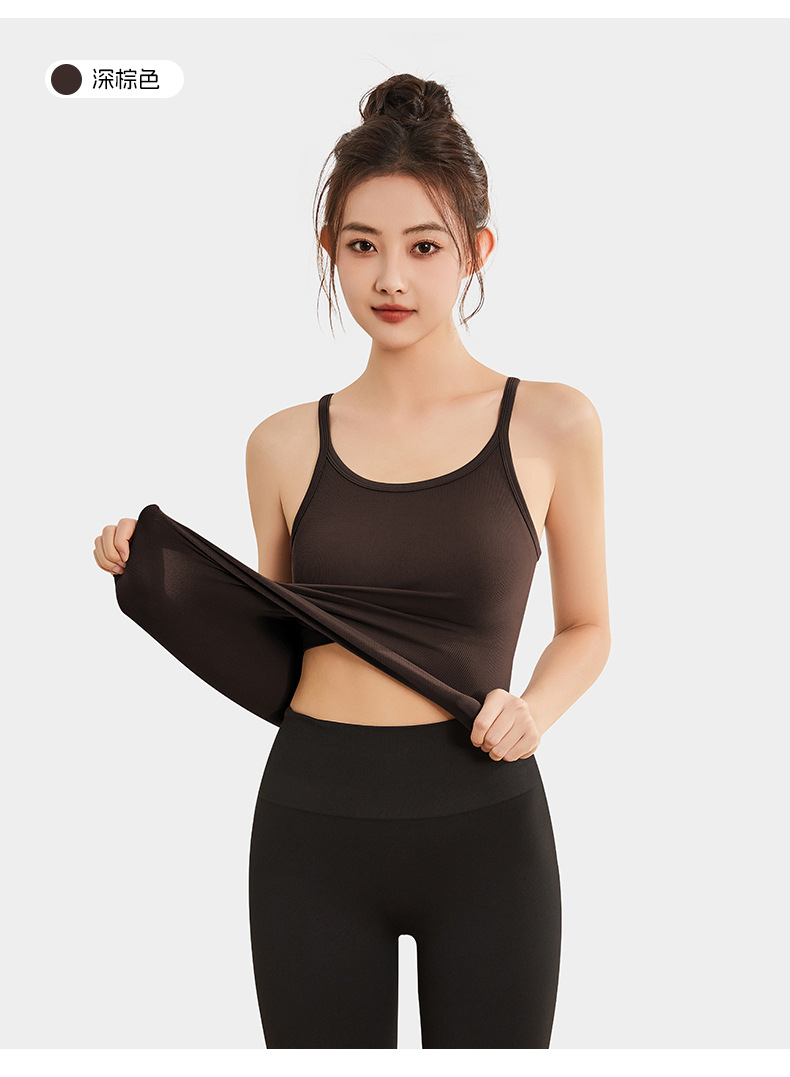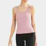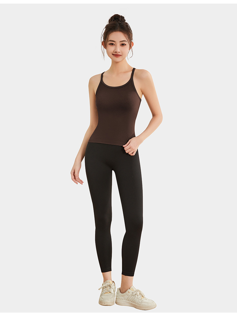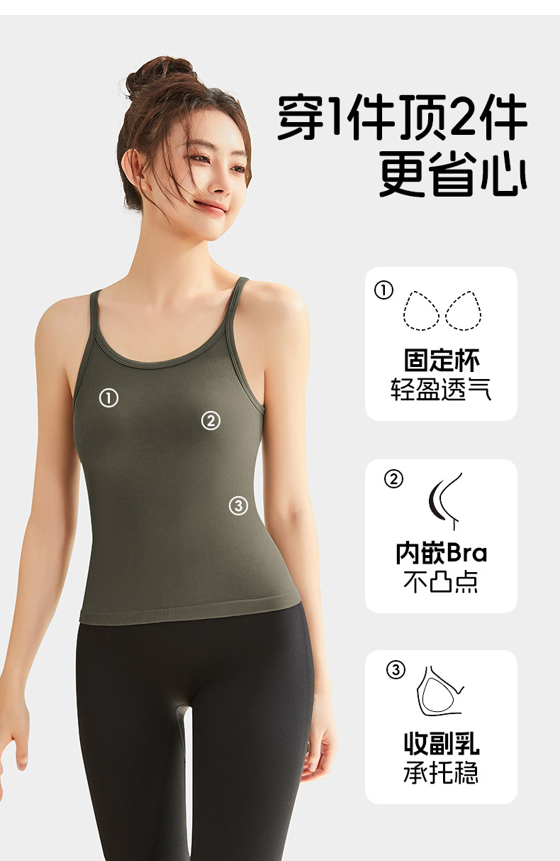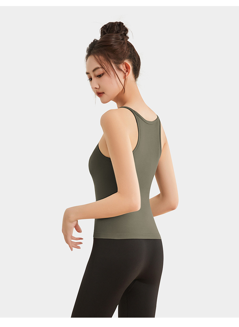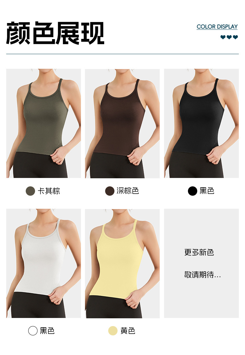 여성용 여름용 라운드넥 요가 상의, 민소매 스포츠 조끼, 다용도 서스펜더, 가슴 패드 포함, 외부 착용 가능스토어 가기
