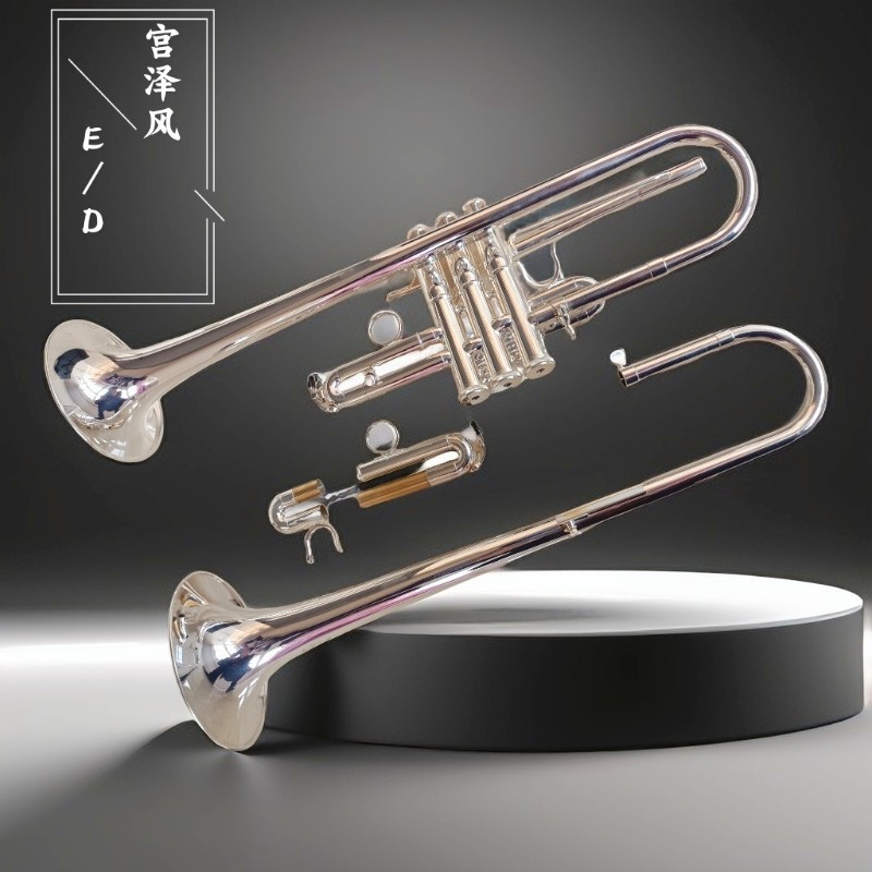 미야자와 바람 서양 연주 E/D 스몰 사이즈 악기 더블 트럼펫 더블 튜브 전문 밴드 실버 도금