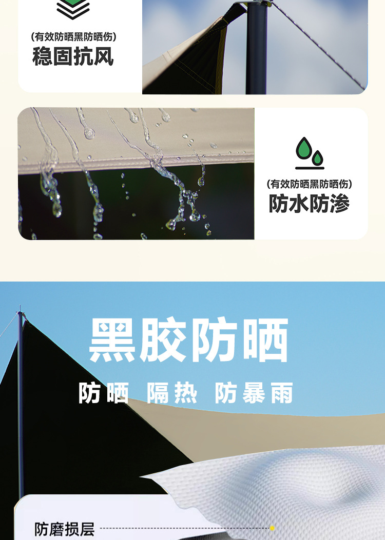 전체 음영 팔각형 검은 접착제 캐노피 텐트 야외 캠핑 햇빛 증가 두꺼운 커튼 선 스크린 아버 캠핑 장비