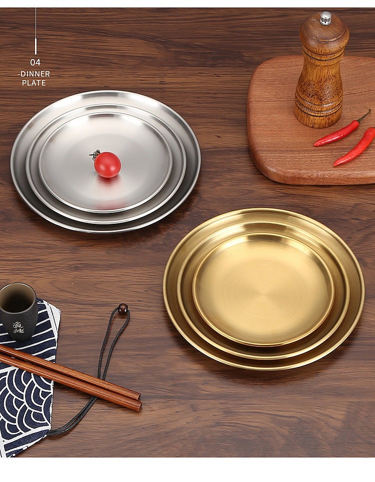공장 직접 스테인레스 스틸 바베큐 플레이트 두꺼운 디스크 한국 바베큐 플레이트 웨스턴 스테이크 플레이트 골든 딤섬 트레이