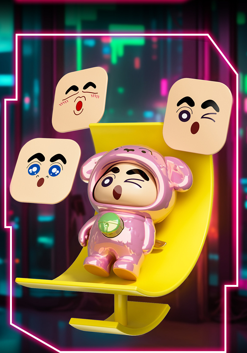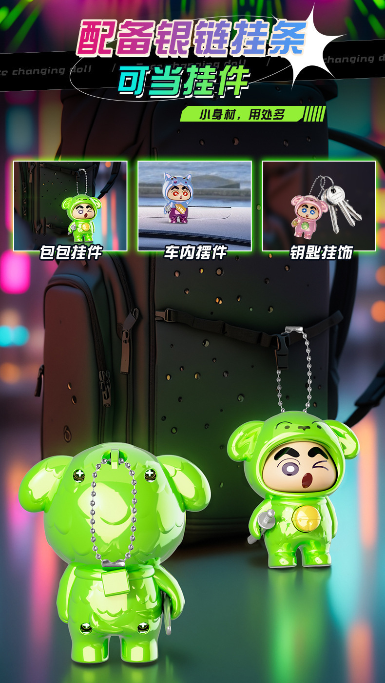 국경 간 폭발 크레용 작은 새로운 레이저 프레스 얼굴 변경 인형 장식품 애니메이션 모델 조수 놀이 만화 장난감 도매스토어 가기