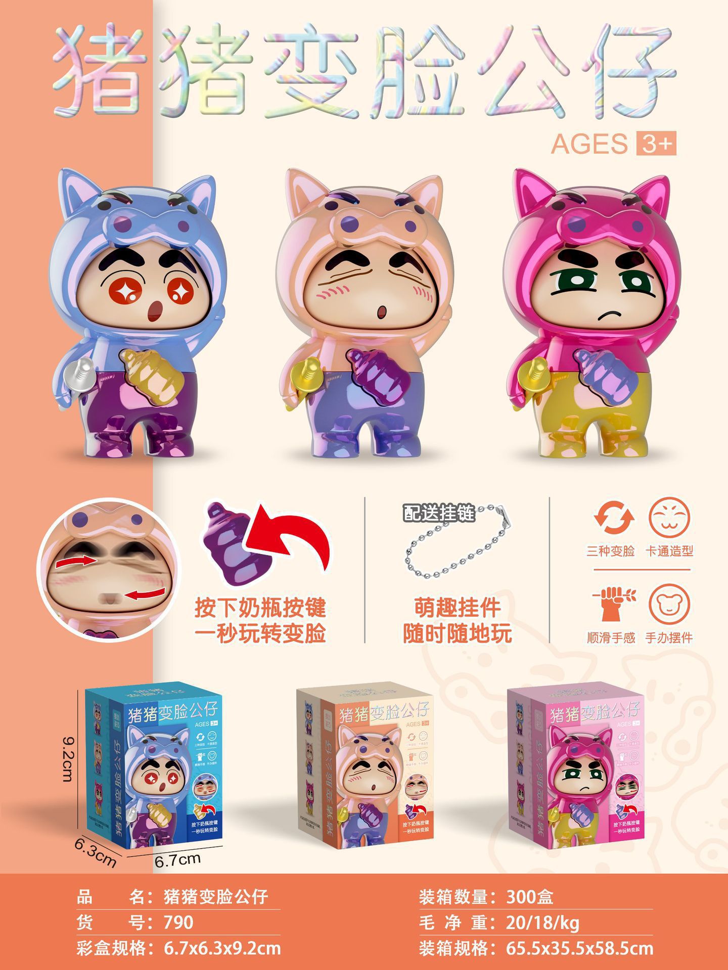 국경 간 폭발 크레용 작은 새로운 레이저 프레스 얼굴 변경 인형 장식품 애니메이션 모델 조수 놀이 만화 장난감 도매