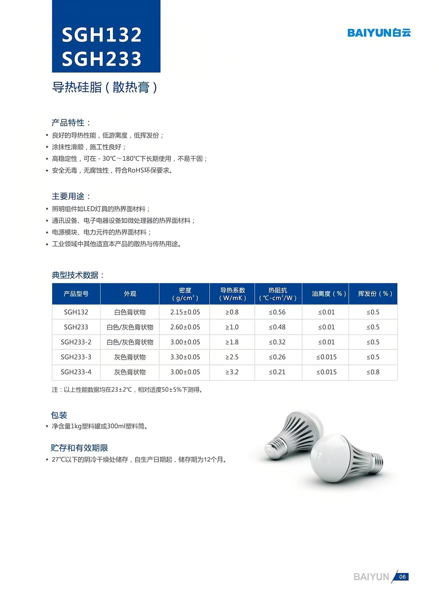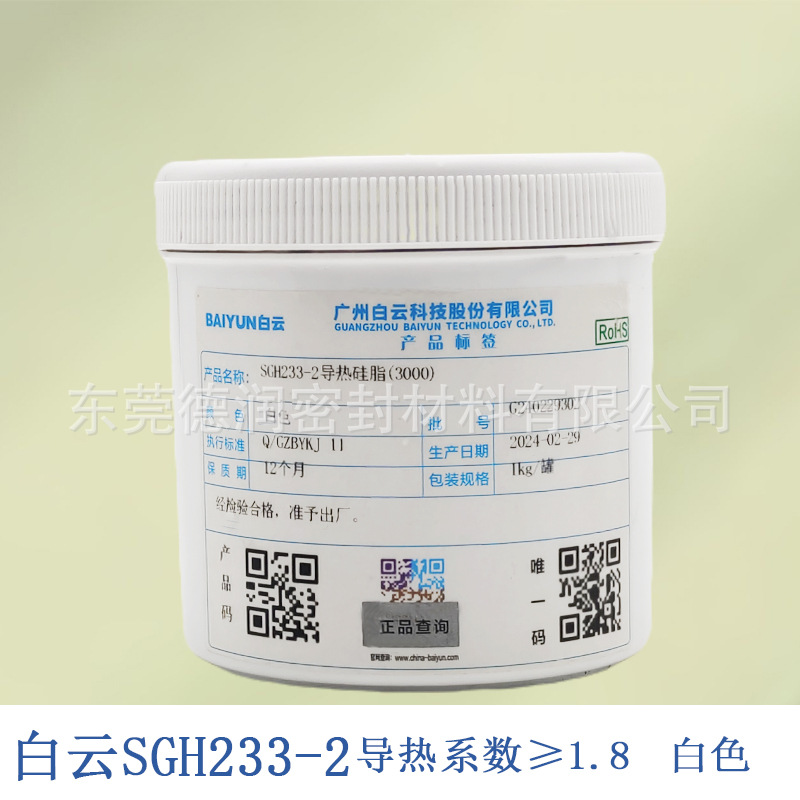 백운(SGH233) 열전도 실리콘 그리스 방열 페이스트 고백색 고온 저항 CPU 전용 접착제 고점도 고출력