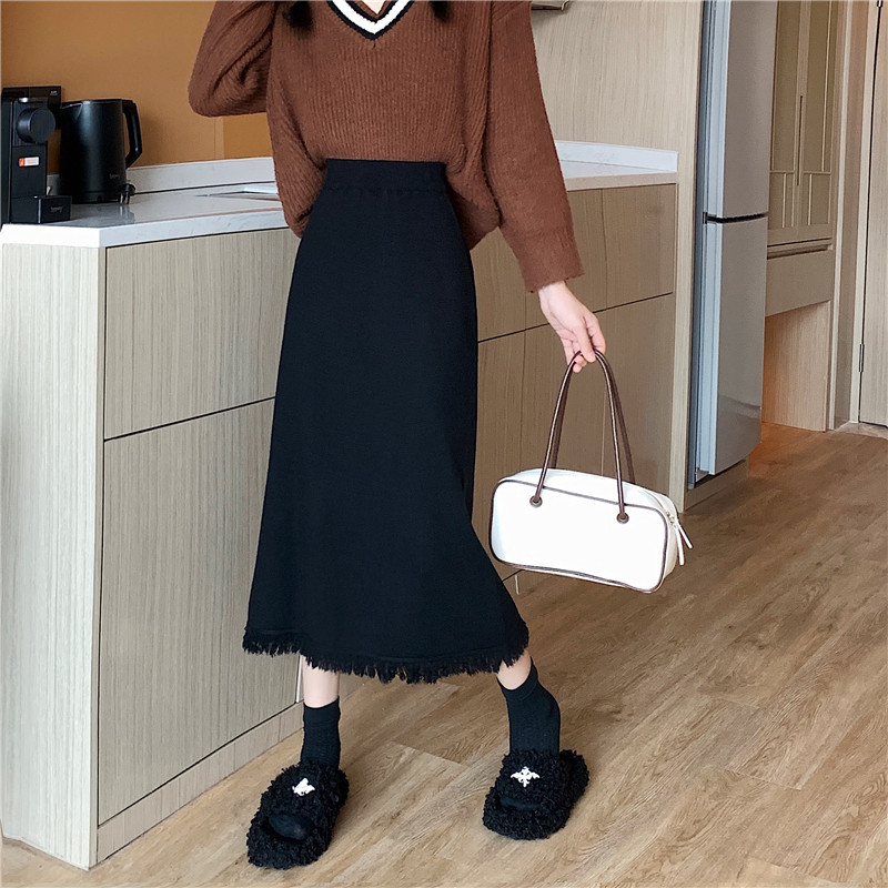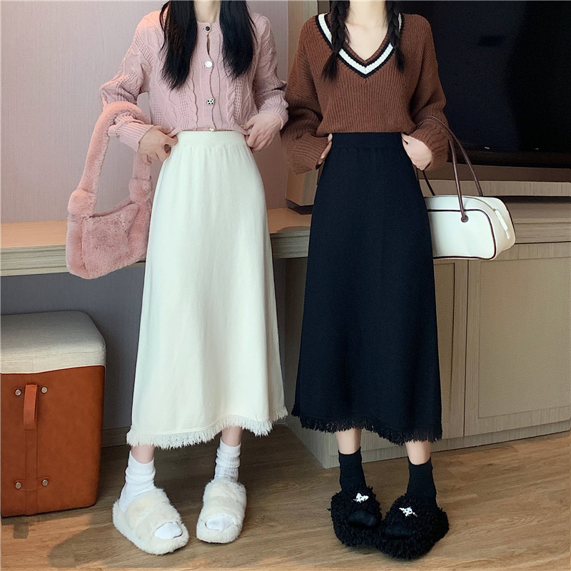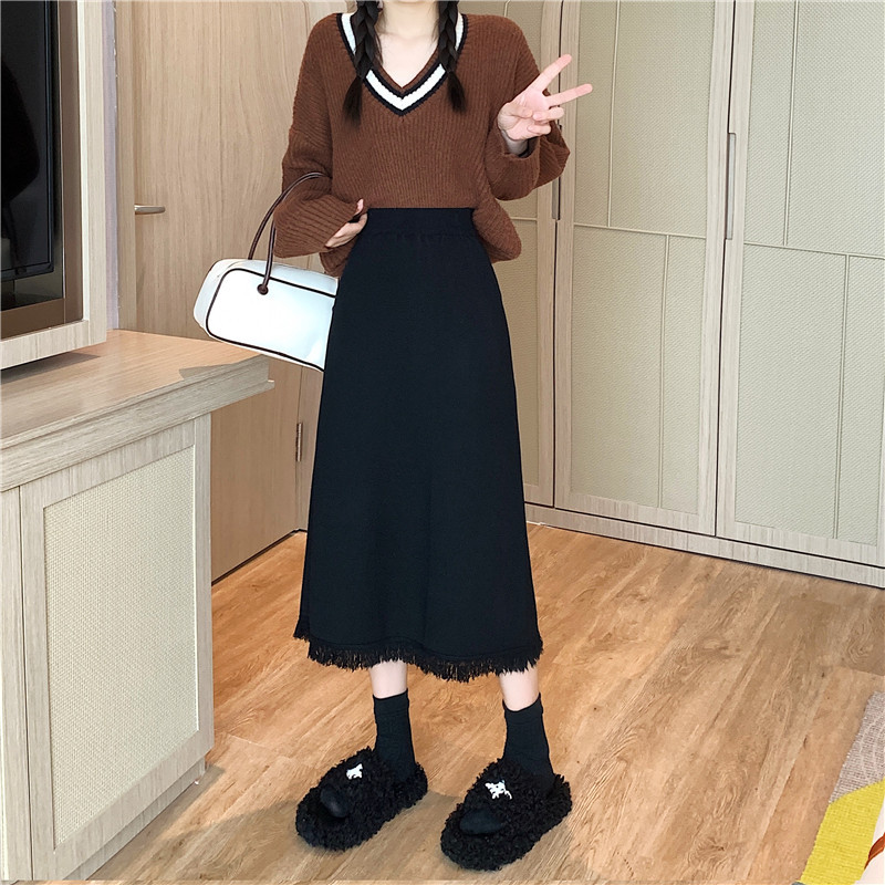 통통녀 가을 새로운 패션 헵번 스타일 틈새 스커트 여성 플러스 사이즈 높은 허리 얇은 중간 길이 A 라인 스커트