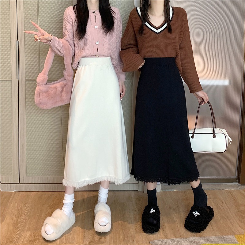 통통녀 가을 새로운 패션 헵번 스타일 틈새 스커트 여성 플러스 사이즈 높은 허리 얇은 중간 길이 A 라인 스커트스토어 가기
