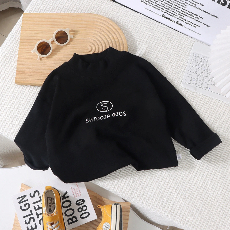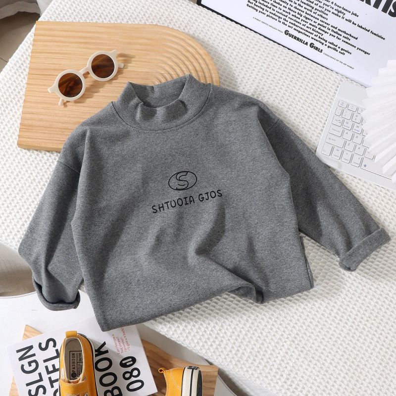 2025티셔츠 어린이 스웨터 탑베이스 셔츠 긴 소매 반 높이 목 가을과 겨울 중간 두꺼운 슬림 학생 버전스토어 가기