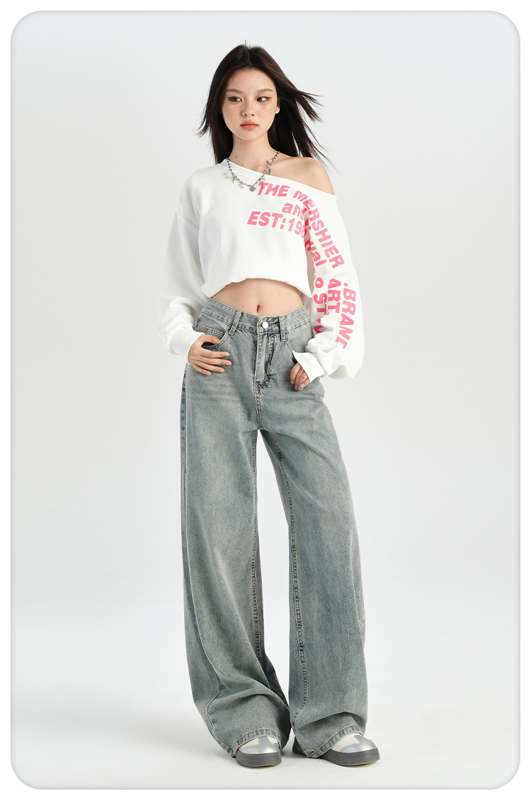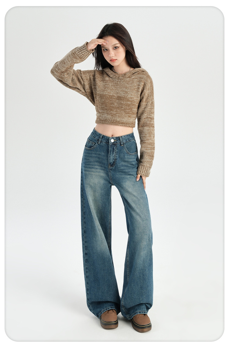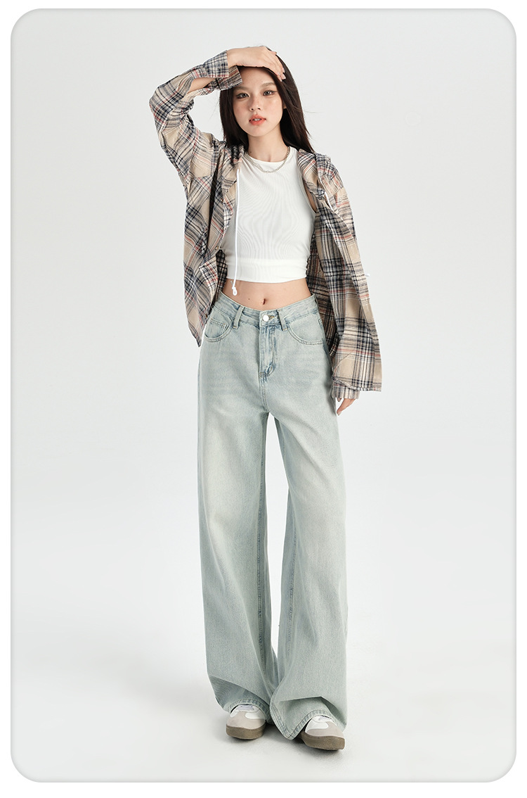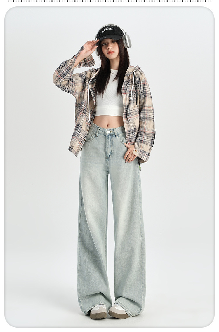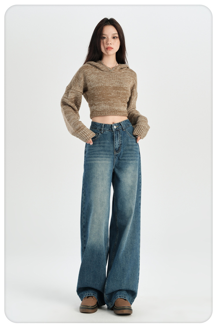 미국 레트로 높은 허리 넓은 다리 청바지 여성의 2024 가을과 겨울 기모 작은 느슨한 슬리밍 바지스토어 가기