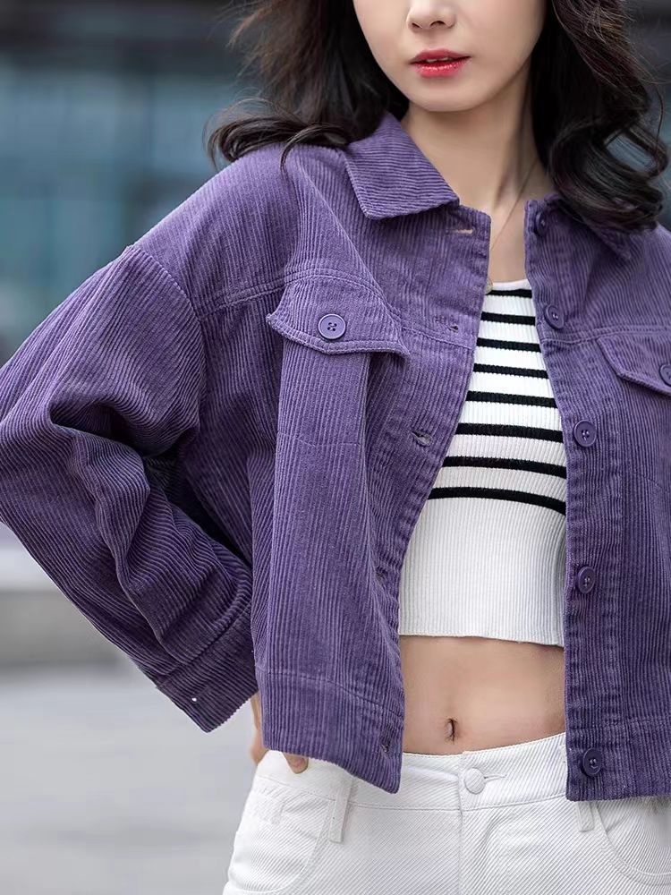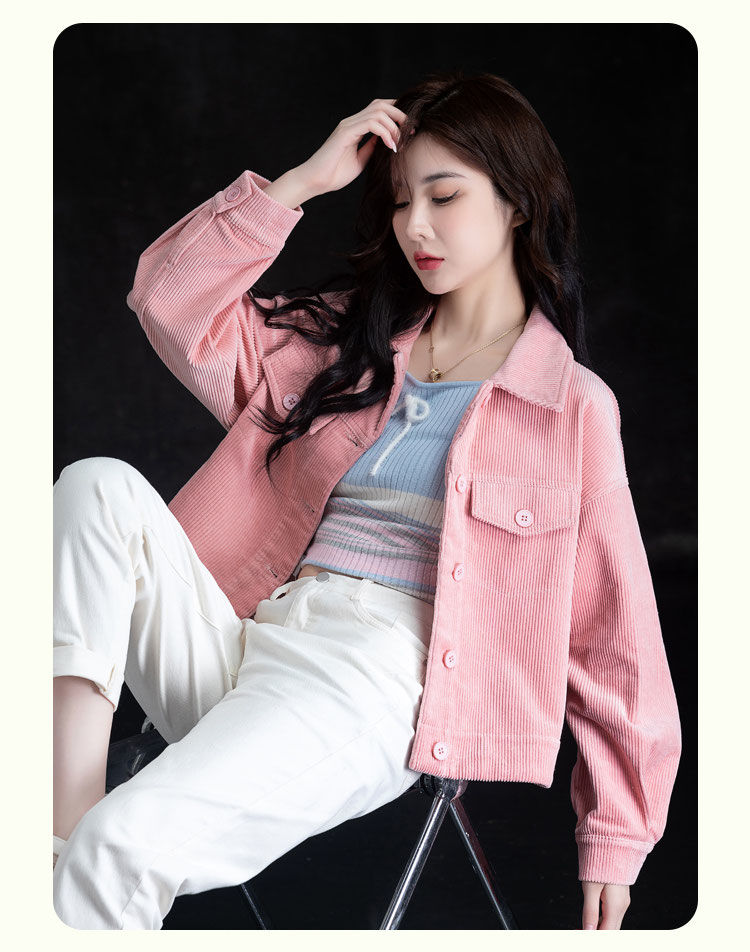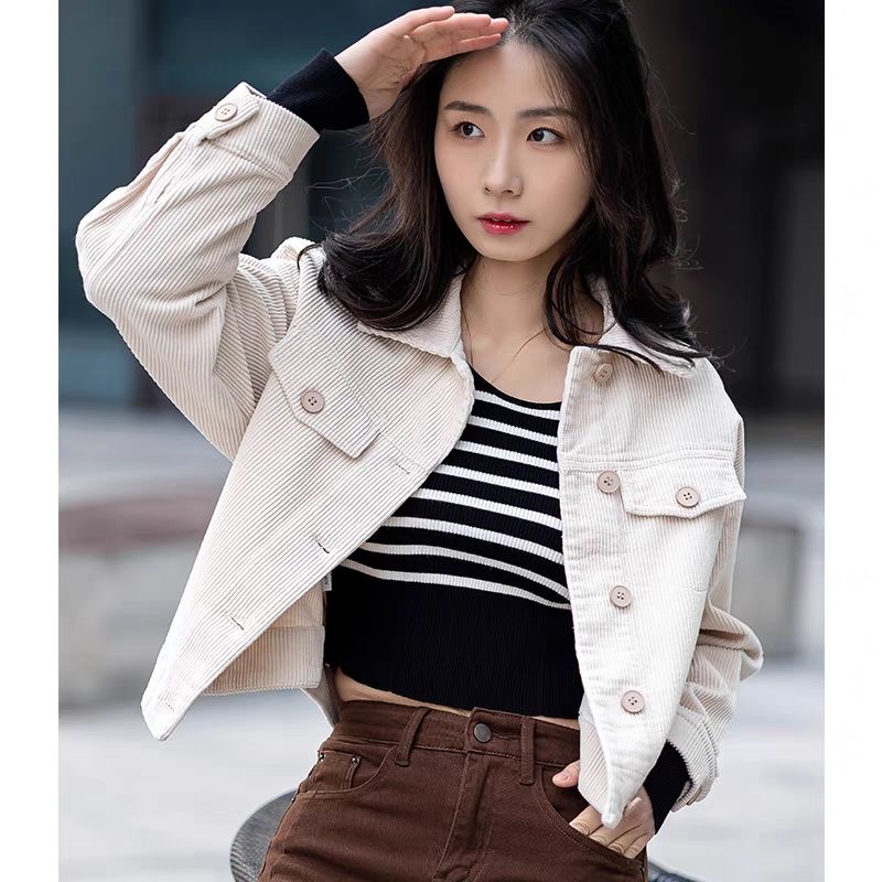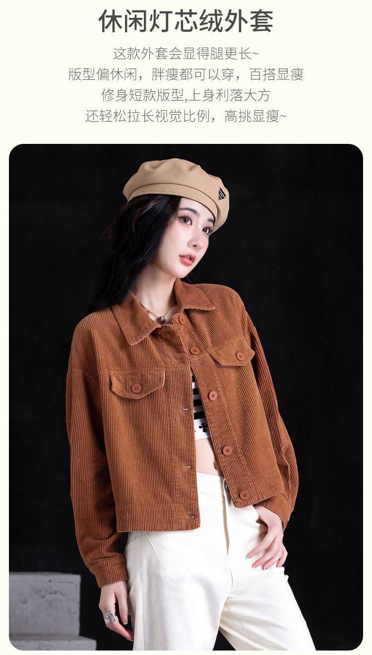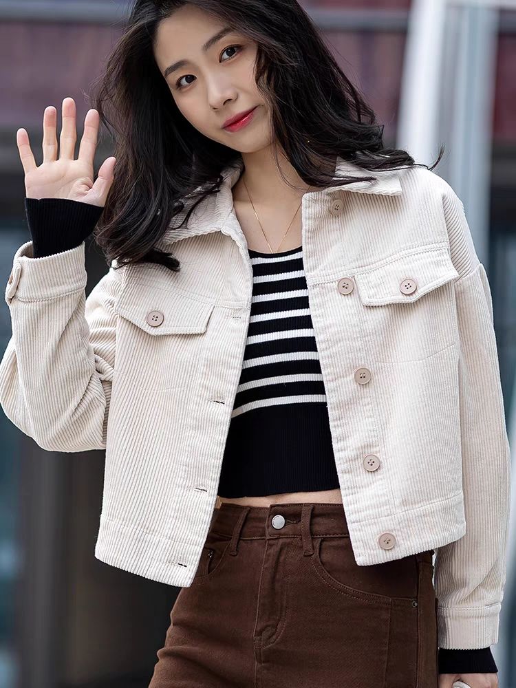 코듀로이 짧은 자켓 캐주얼 셔츠 여성용 가을과 겨울 Corded 셔츠 긴팔 작은 우아한 카디건 올매치스토어 가기