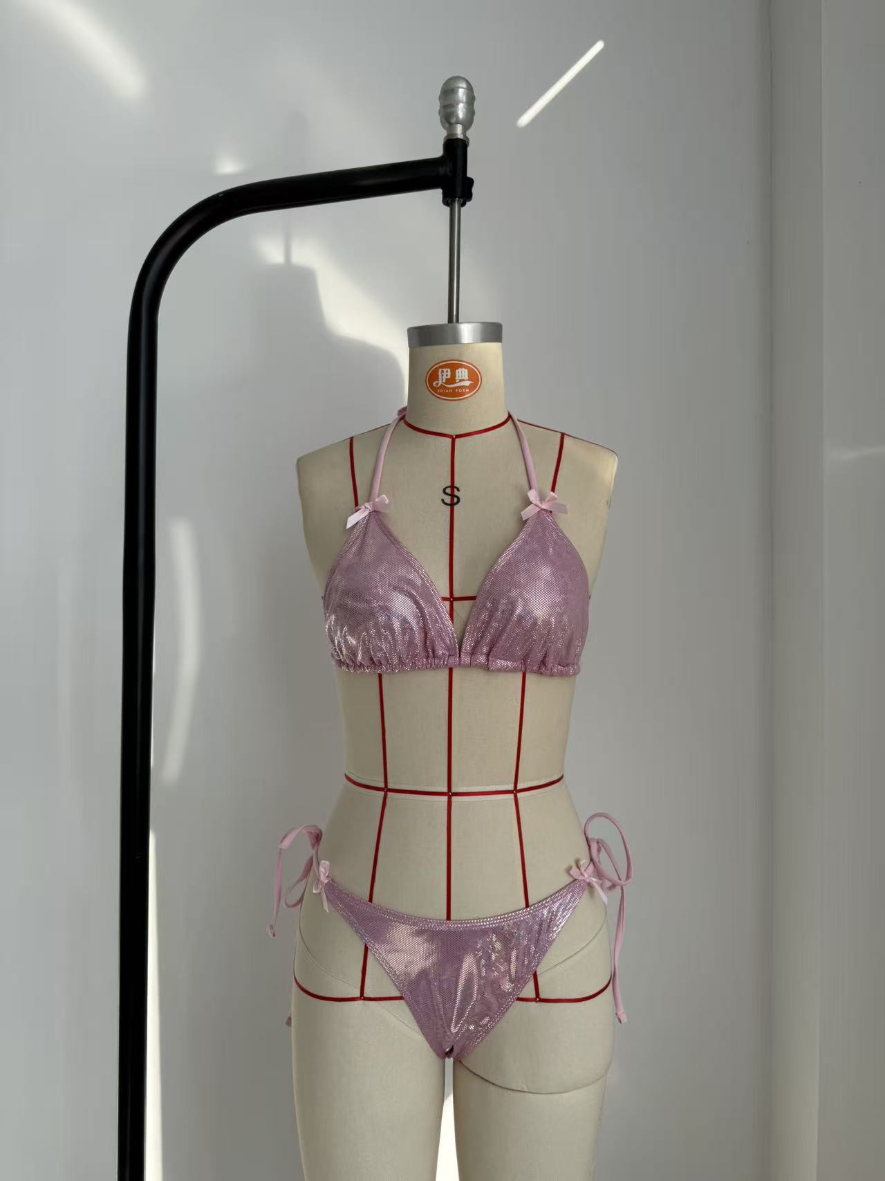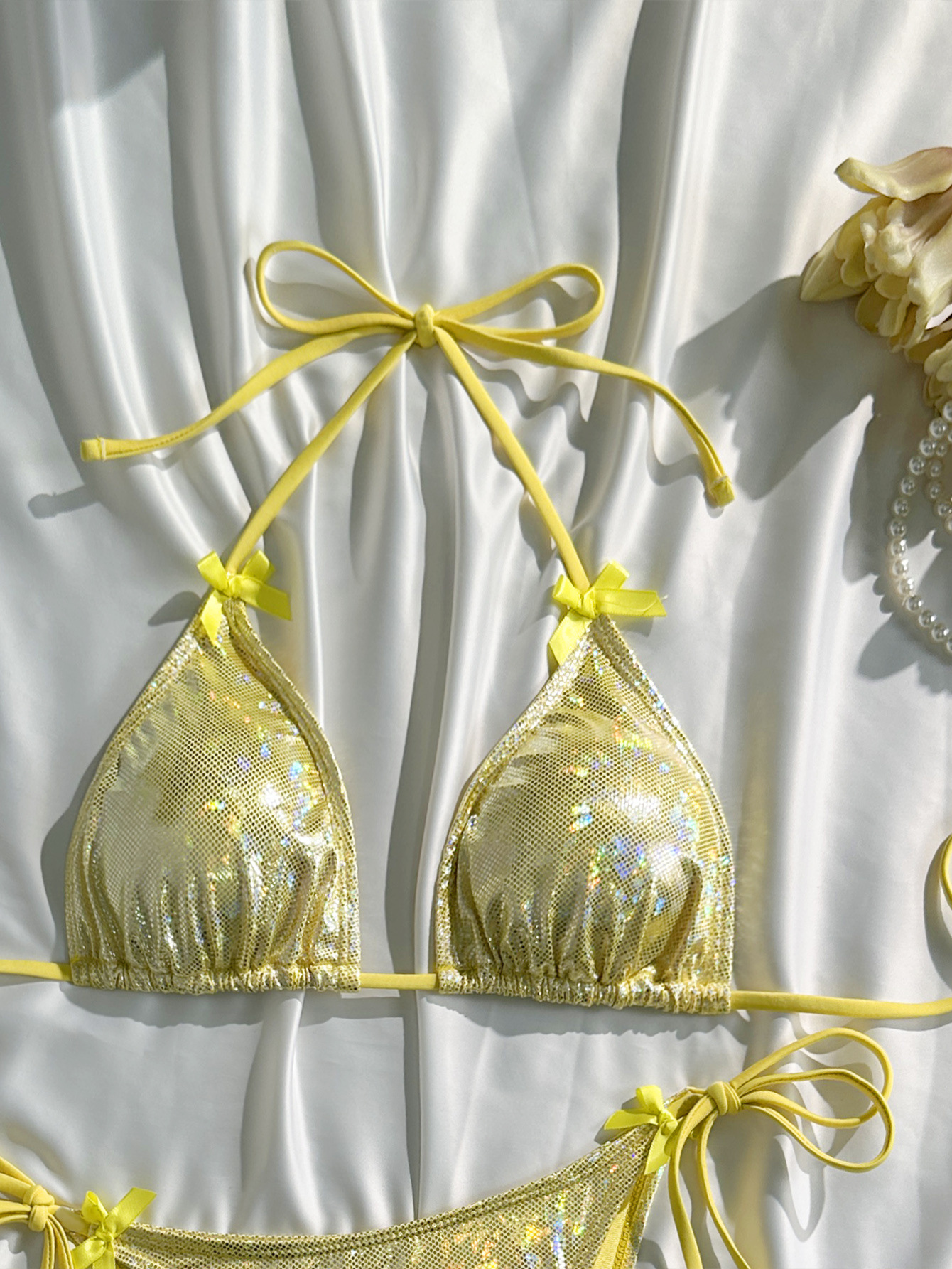 2025 유럽과 미국의 새로운 섹시한 단색 활 비키니 비키니 여성 해변 휴가 대외 무역 수영복스토어 가기