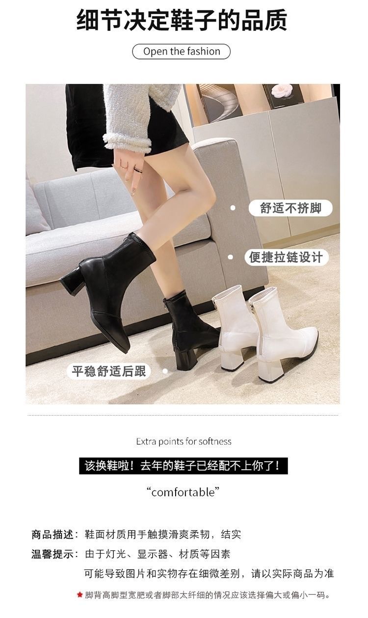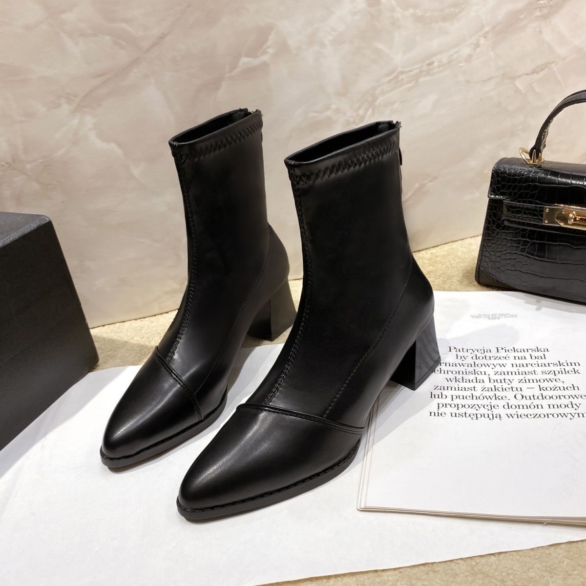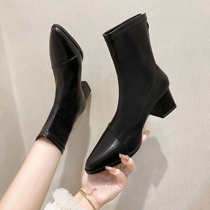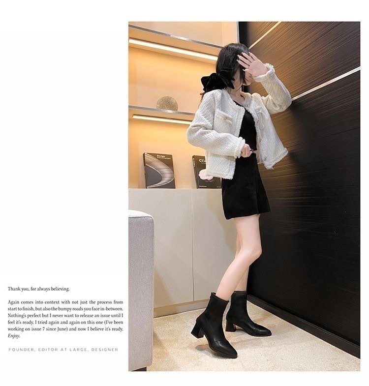 두꺼운 뒤꿈치 뾰족한 발가락 패션 얇은 부츠 편안한 짧은 부츠 영국 스타일 마틴 부츠 2024 가을과 겨울 새로운 유행 가죽 부츠스토어 가기