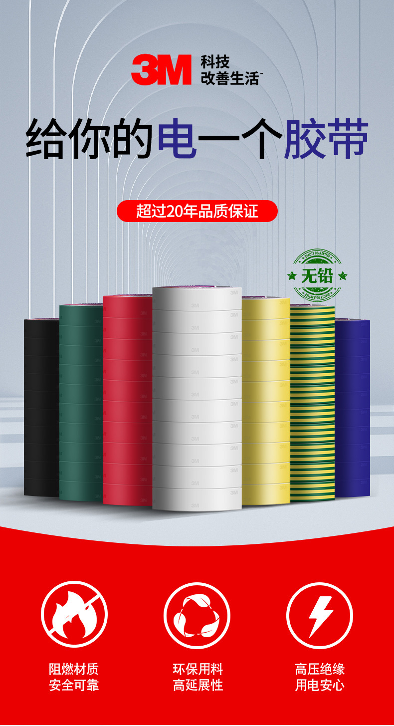 3m1600耐高压绝缘电工胶布 电气无铅阻燃环保胶带3m电工胶带