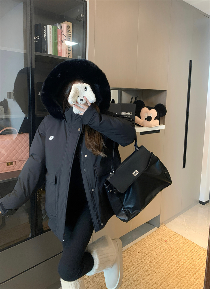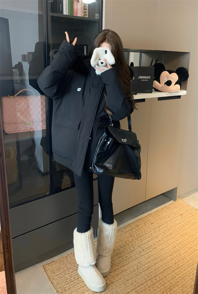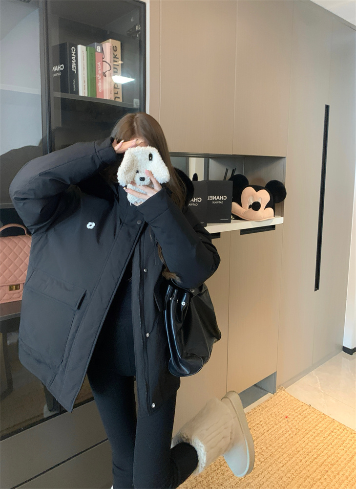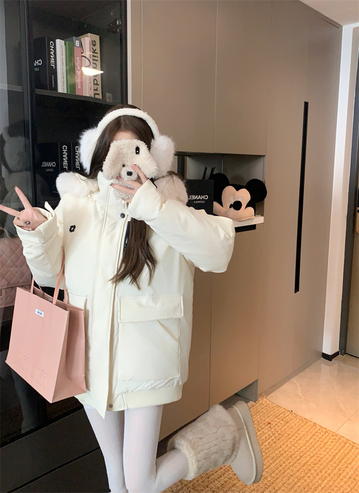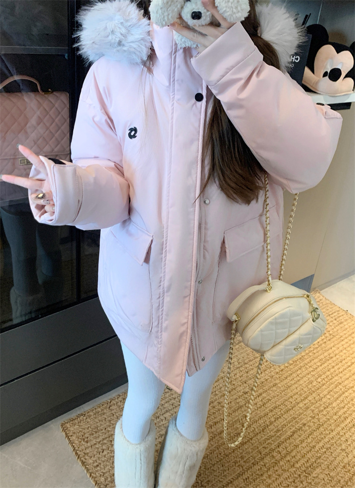 올해 겨울 인기있는 느슨한 디자인 후드 오버 코트 기모 두꺼운 따뜻한 파커면 패딩 재킷 여성스토어 가기