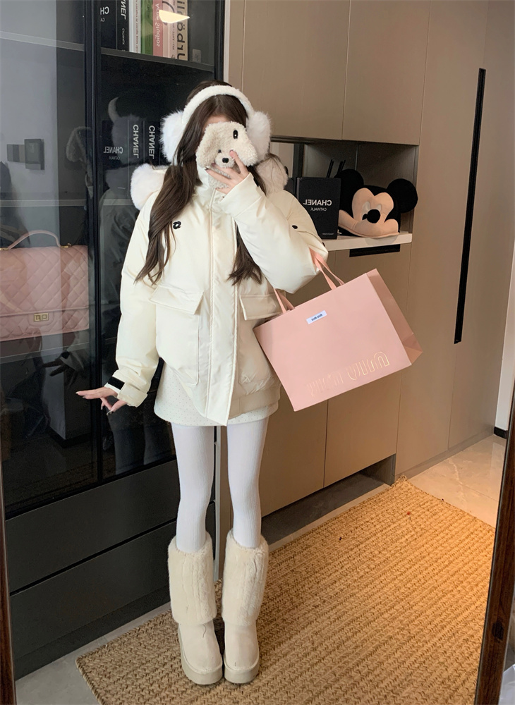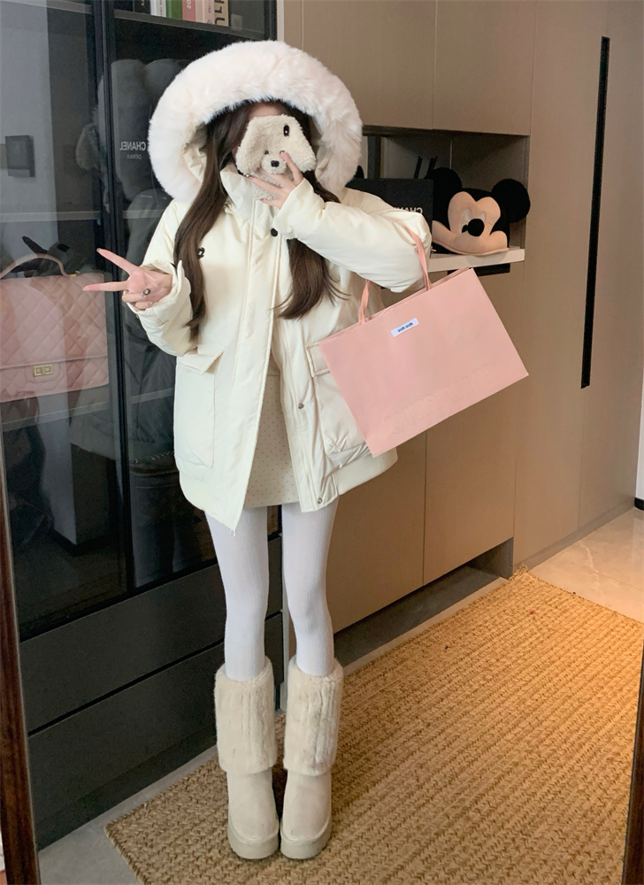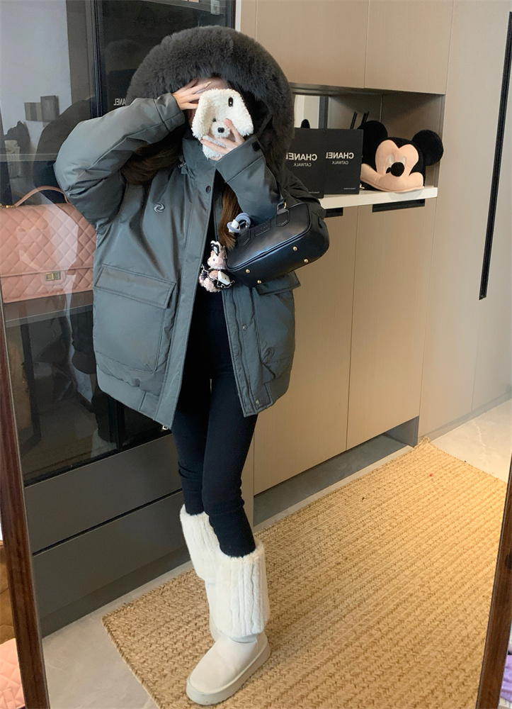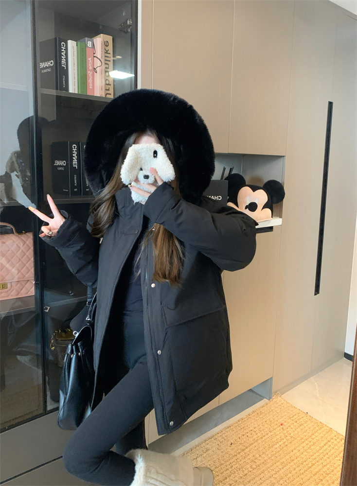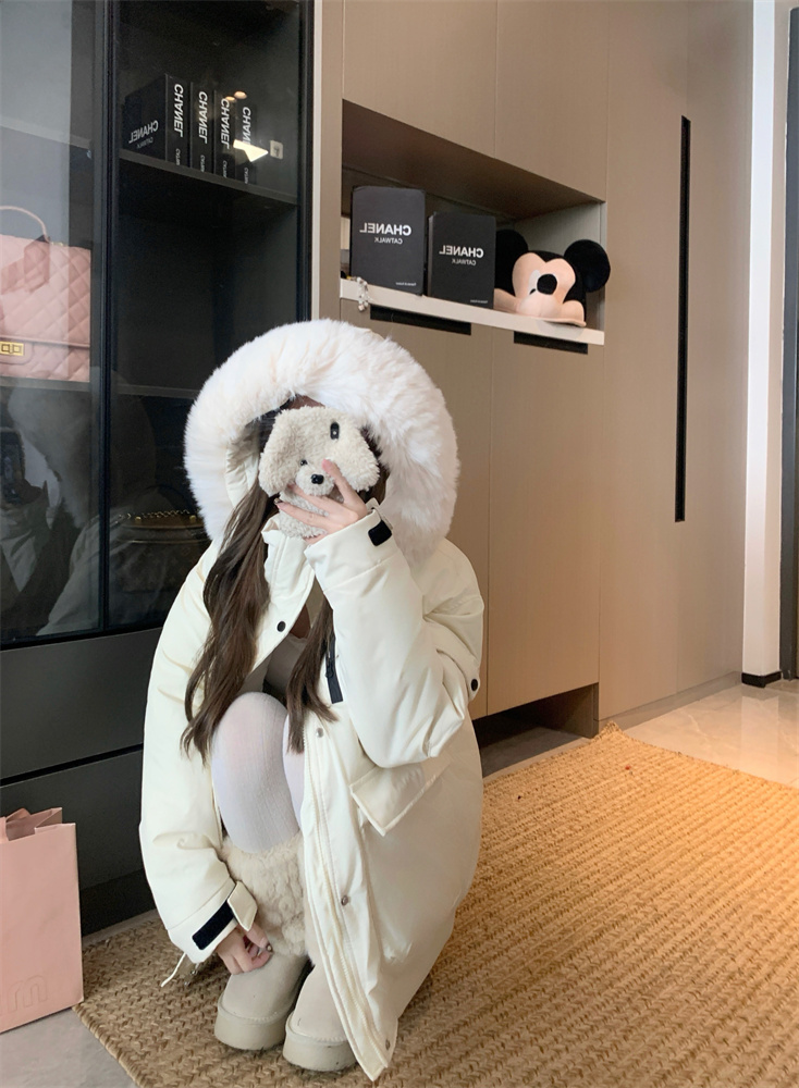 올해 겨울 인기있는 느슨한 디자인 후드 오버 코트 기모 두꺼운 따뜻한 파커면 패딩 재킷 여성스토어 가기