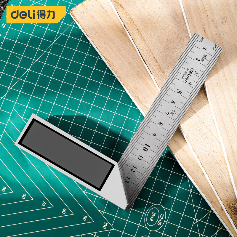 델리 DL302150 알루미늄 다이 캐스팅 스틸 앵글 통치자 90 도 목공 통치자 다기능 앵글 통치자가 수평 직각을 두껍게